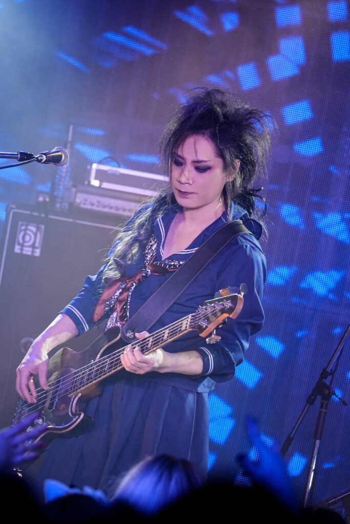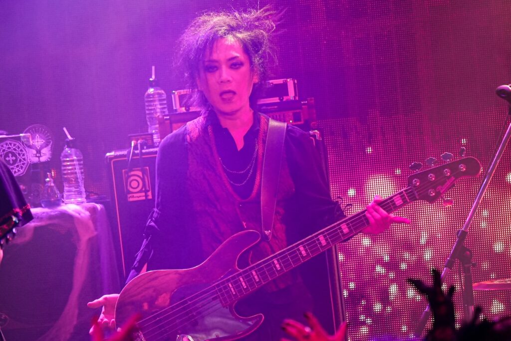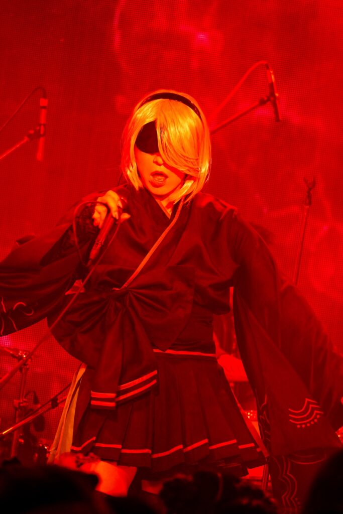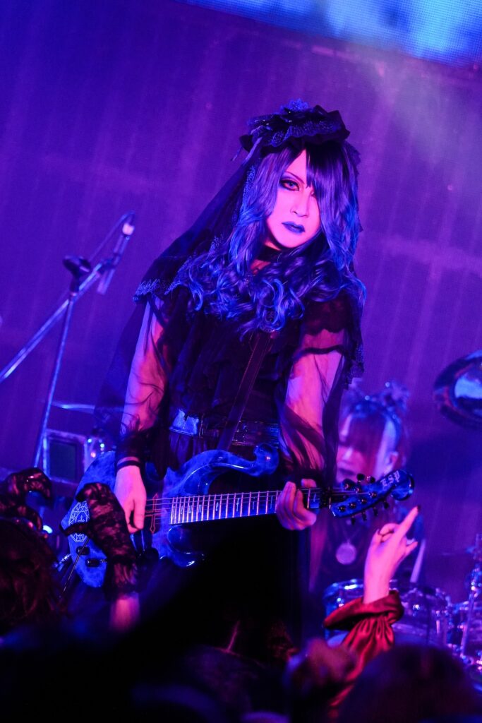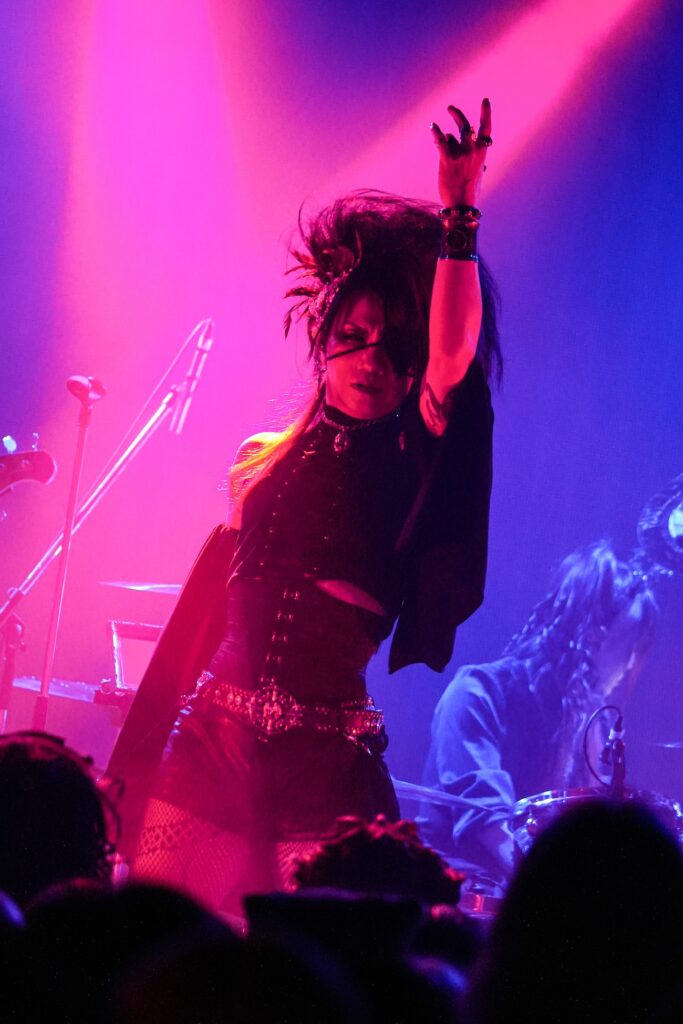 「離さねぇかんな、なめたらあかんぜよ!」とRyuxが煽る。『Night Breed』では、さらにデスでダークでエクストリームな音を、爆走する楽曲に乗せて彼らは叩きつけてきた。強烈なリフを刻むメンバーたち。Sethに寄り添うように、女形ドレス姿のManaがフロントでギターを弾く姿も麗わしい。攻撃性を満載した荘厳シンフォニックな姿に興奮を隠せない。Sethの煽りの応酬へ食らいつこうと、観客たちも魂が奮い立つまま暴れ続けていた。