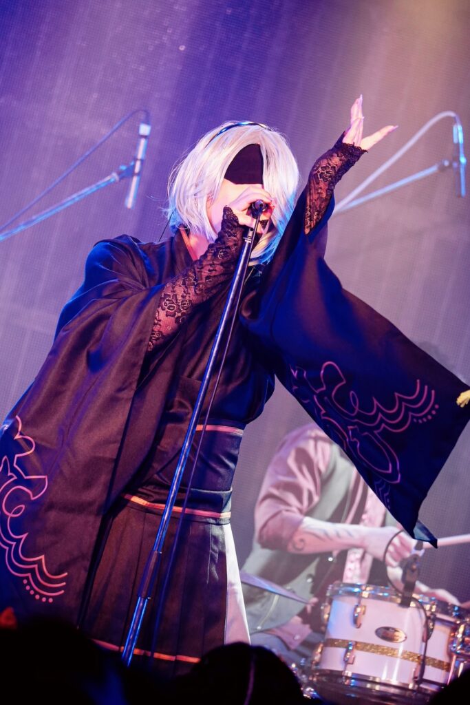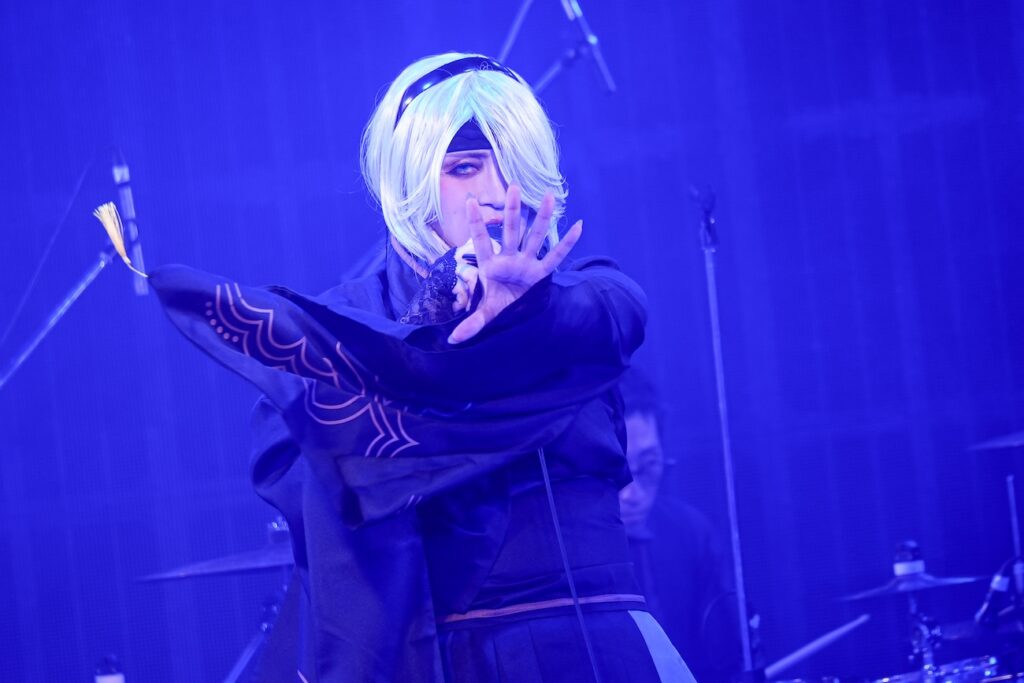 壮麗なクワイアが流れだす。祈りを捧げるような神聖な様を見せたうえで、Sethの唱えた「Vestige」の声を合図に、Moi dix Moisは麗しくて芳しい音色と、Sethの甘い歌声も印象的なミドルメロウの『Vestige』を届けてくれた。甘美さと刹那な香りが寄り添いながら、美しくも幻想的な世界をこの場に描きだす。なんて、うっとりと酔いしれてしまう歌声と演奏だろう。幻想麗美なこのひとときに、今はとろけるように浸っていたい。