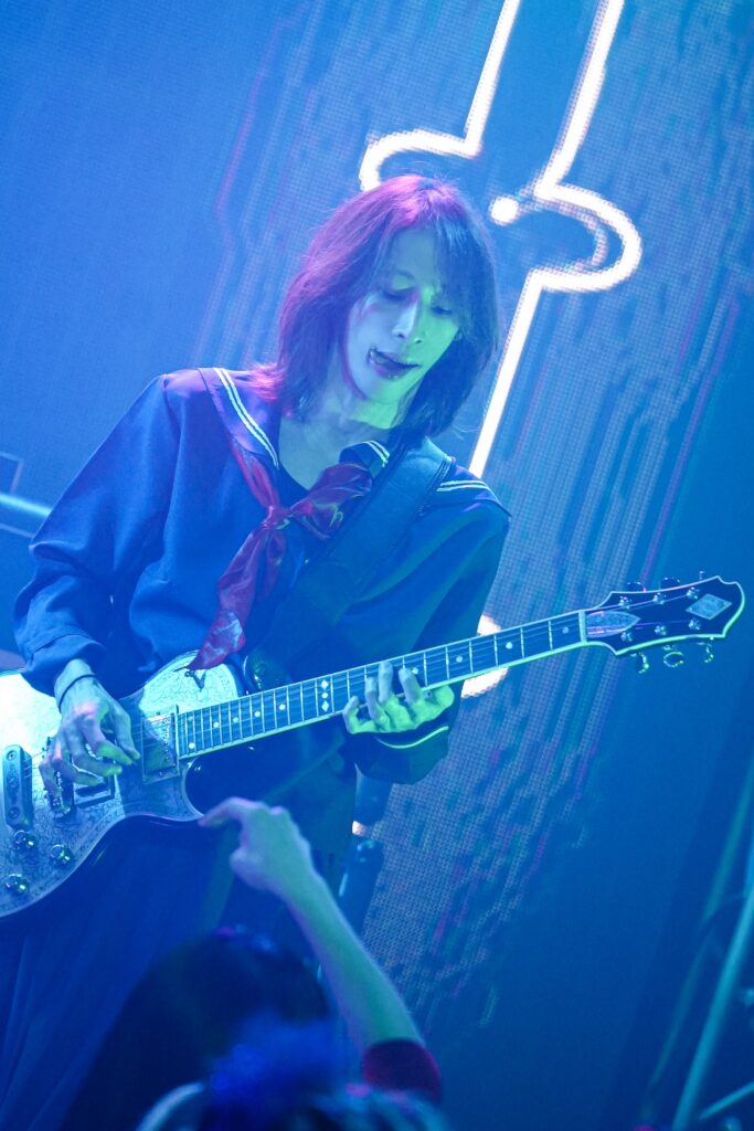 とても荒々しい演奏だ。攻めた姿を見せながらもサビで美しい歌声を響かせるたびに、フロアでも、その刺激を受けてたくさんの手の花が咲き揺れていた。美しく甘い歌声や旋律の中に潜む攻撃的な思いを身体に感じるたび、胸の高ぶりを覚えずにいられない。