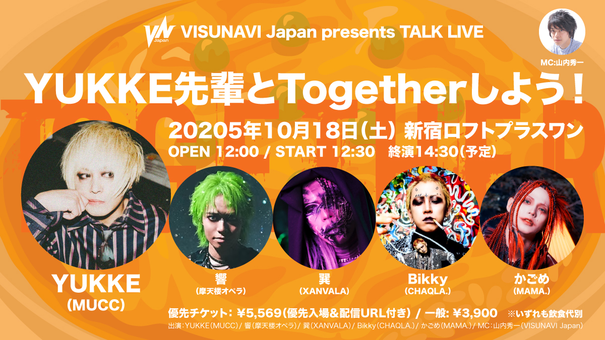 3. “VISUNAVI Japan主催トークライヴ”~YUKKE先輩とTogetherしよう!~“が10月18日(土・昼)に超緊急開催決定!