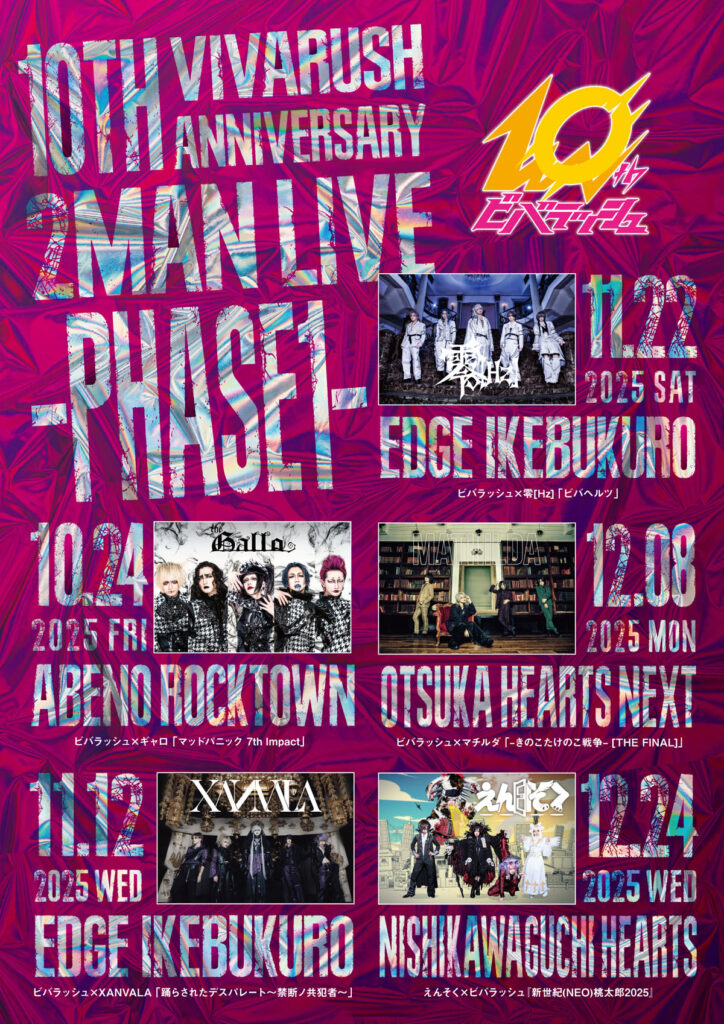 【ビバラッシュ】結成10周年記念ツーマンライブをXANVALA、零[Hz]と開催。先行受付はまもなく締切