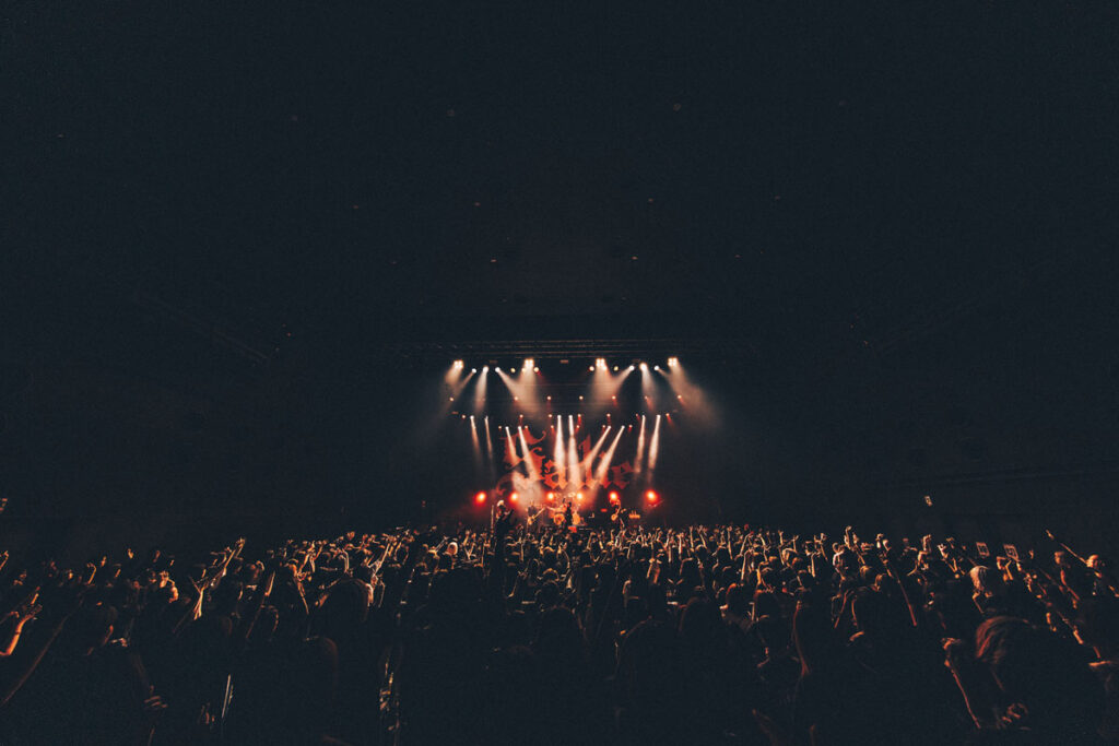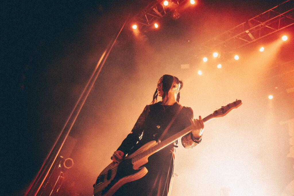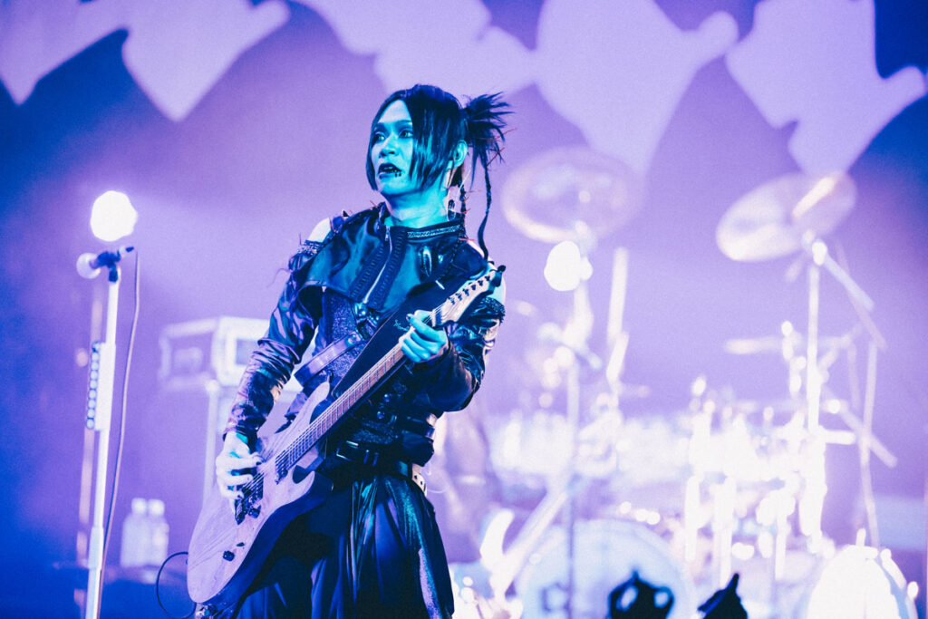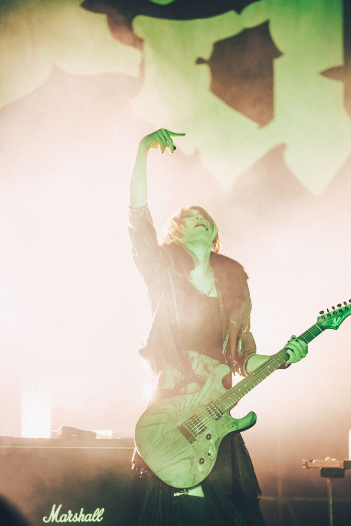 前夜では1曲目に供された「Grieving the dead soul」が、この夜は最終ブロックの入口を担い、ドラム台を囲むように剣、美月、亜季、景の楽器陣が向かい合ってプレイする光景が見られれば、フロアにヘドバンの絶景を生み出した「サイコカルチャー」では、フロント4人がセンターに集結する場面も。「お前たちの居場所はここだ!」と真緒が叫び、とてつもないロングトーンのシャウトを響かせたシーンは圧巻だった。そしてラストを飾ったのは、ファンに捧げるメッセージソング「a holy terrors」。〈独りじゃないよ 傍にいてるから 遠く離れてても〉の一節をアカペラで歌い上げた場面は、忘れがたい余韻を残した。