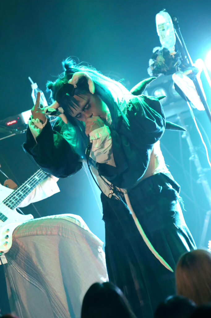 とりわけこの日の命依は絶好調で、「罪×罰」では赤子のように鳴き、解釈の間口を広げる。メロウなサビでこそフックになるフレージングで援護射撃する真(Ba)も見事だが、ムードに則したアドリブで距離設定を計るJiMYY(Gt)と楽曲憑依型のかごめ(Gt)と楽器陣もそれぞれの個性が以前より際立っている印象だ。