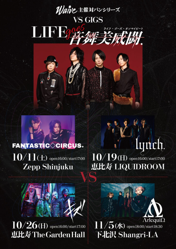 ライブでは、先週ファイナルを迎えたラストツアーに続き、主催・対バンシリーズ4番勝負のスタートを切る。初日10/11(土)のZepp新宿公演の相手は「FANTASTIC♢CIRCUS」、次週10/19(土)は恵比寿LIQUIDROOMで「lynch.」、3週目10/26(日)は恵比寿The Garden Hallで「キズ」、最後は11/5(水)下北沢Shangri-LAにて「ΛrlequiΩ」を迎え撃つ。