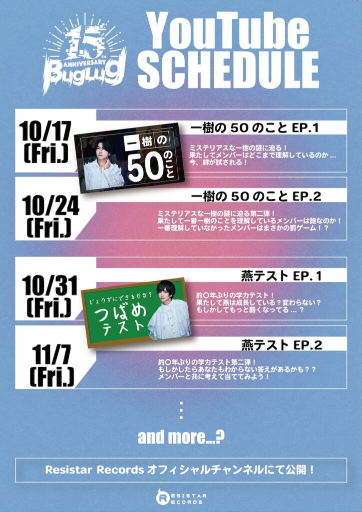 さらに、ギタリスト・一樹にまつわる50の質問にメンバーが挑戦する『一樹の50のこと』や、ベーシスト・燕が“びじゅあるバカの学力テスト”に再挑戦する『燕テスト』の公開も控えている。