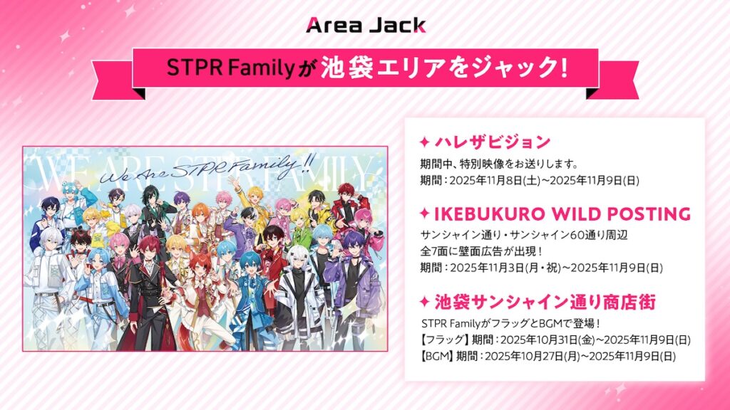 AGF2025への「STPR Family」初登場を記念して、池袋を中心としたエリアのさまざまなお店でSTPR Familyのビジュアルが展開されます!