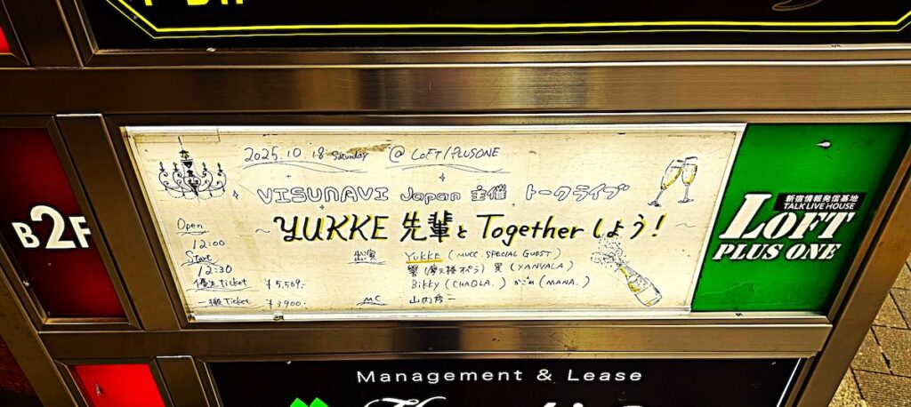 10月18日(土)にVISUNAVI Japan主催トークライヴ「YUKKE先輩とTogetherしよう!」が新宿ロフトプラスワンで開催された。