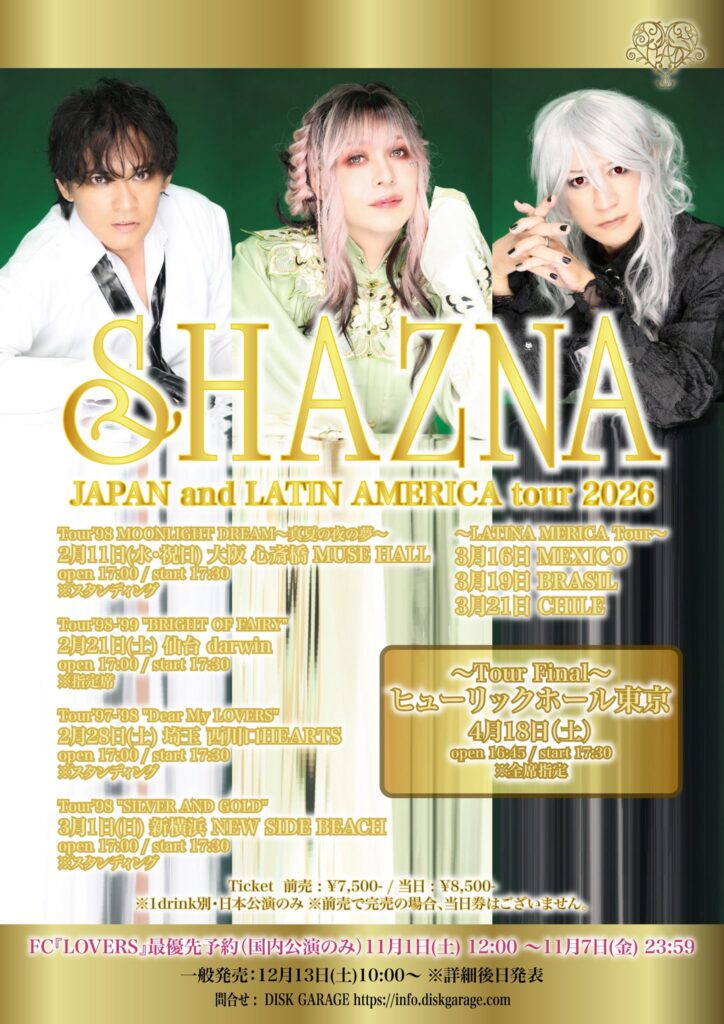 『SHAZNA JAPAN and LATIN AMERICA tour 2026』