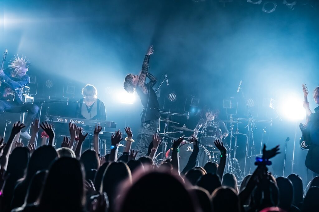 SEの中、フロアを煽りまくる楽器隊の3人様!そしてVoの真虎様もステージへ!