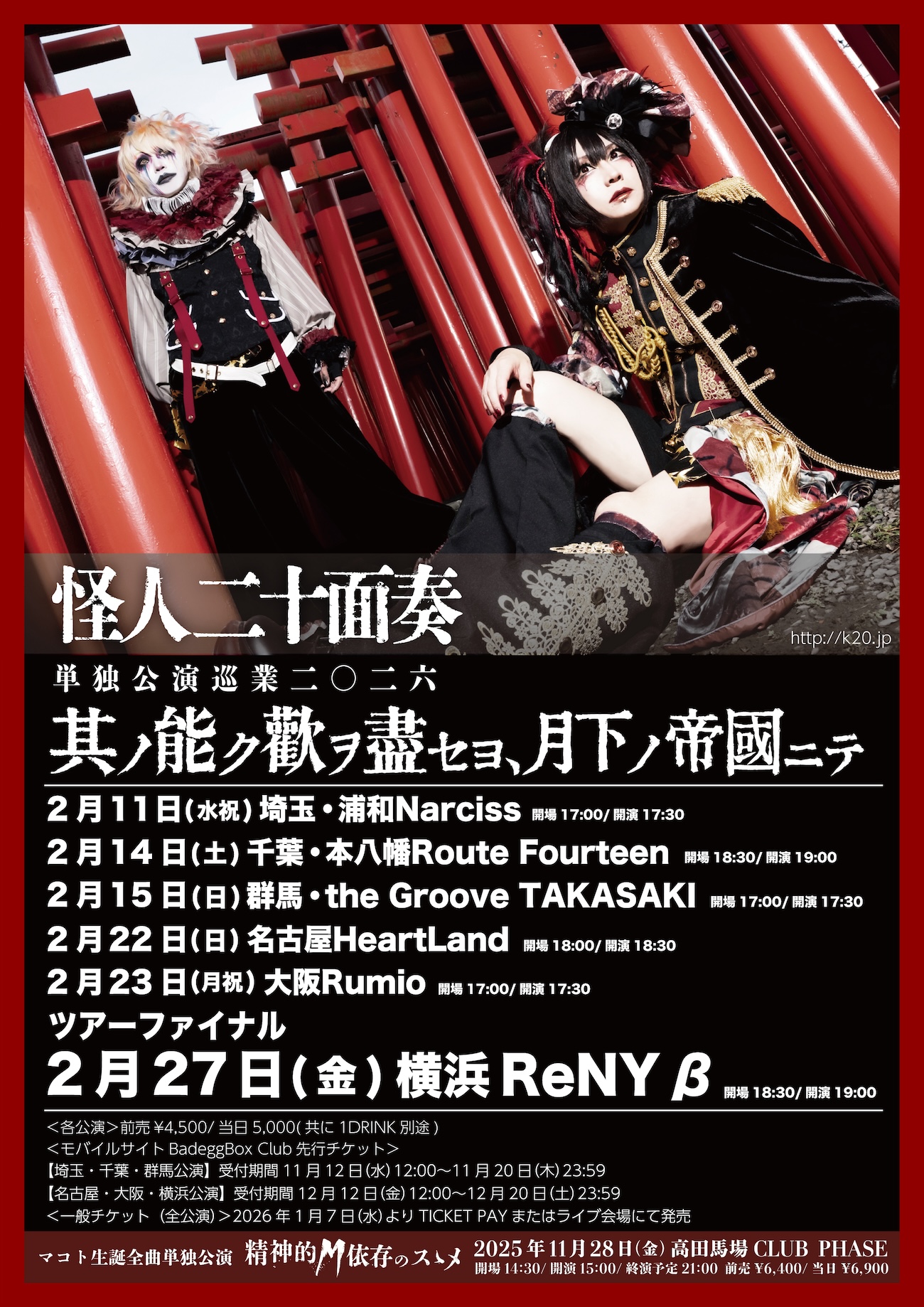 タイトルは<怪人二十面奏 単独公演巡業二〇二六「其ノ能ク歡ヲ盡セヨ、月下ノ帝國ニテ」>。