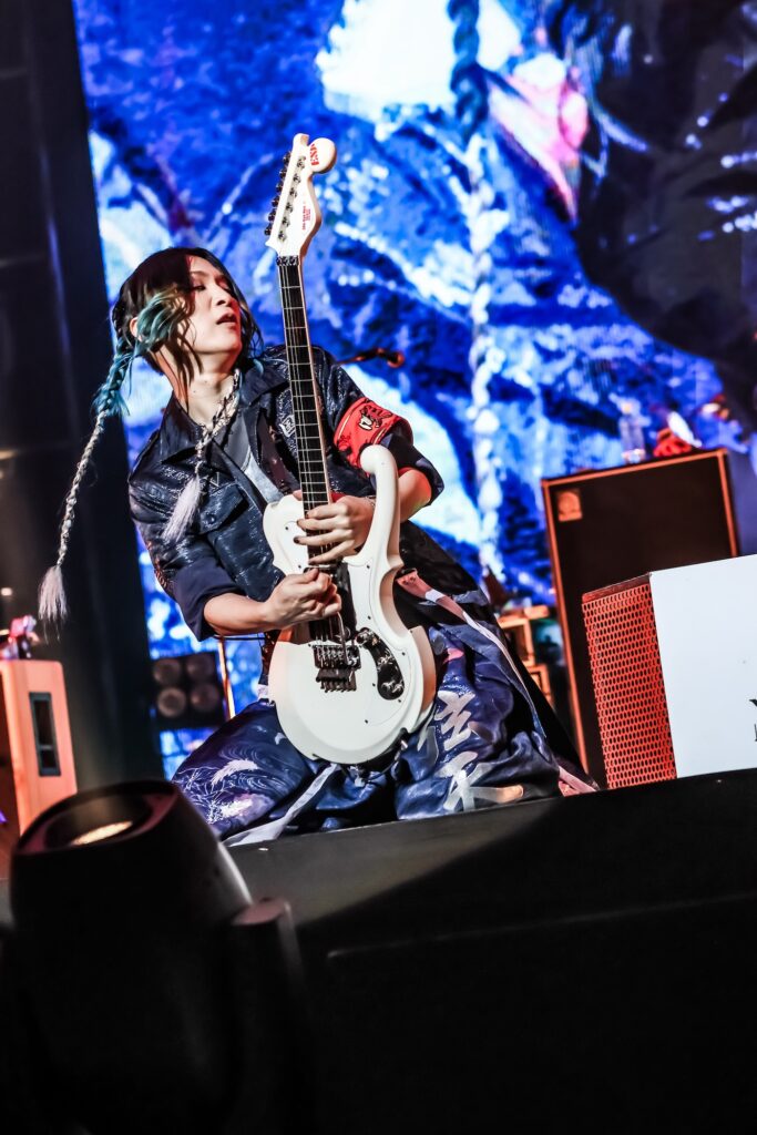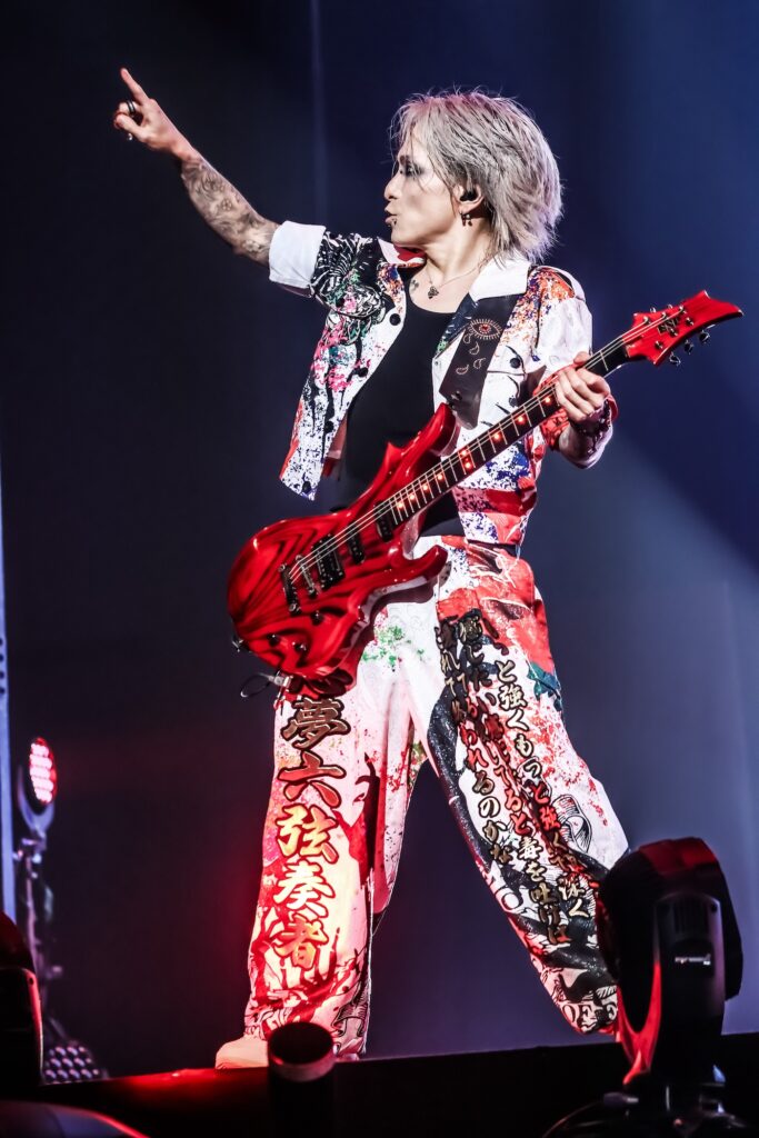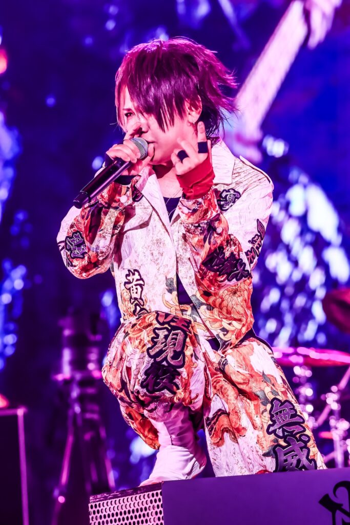 RUKAが頼もしいドラミングで曲を牽引し、Ni~yaが指弾きとピック弾きを併用して躍動感を醸し出していた「Can you do it?」。咲人がギターでのスラップをバチバチに決めていた「極上脳震煉獄・弌式」、柩がザクザクしたリフだけでなく咲人とのハモりでも的確な仕事ぶりをみせていた「ジャイアニズム天」。初武道館でも大ラスを締めくくっていただけに、YOMIのヴォーカリストとしての進化がうかがえたばかりか、当時以上に観客らによるシンガロングが武道館いっぱいに響いた「Star[K]night」。