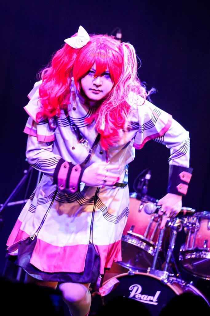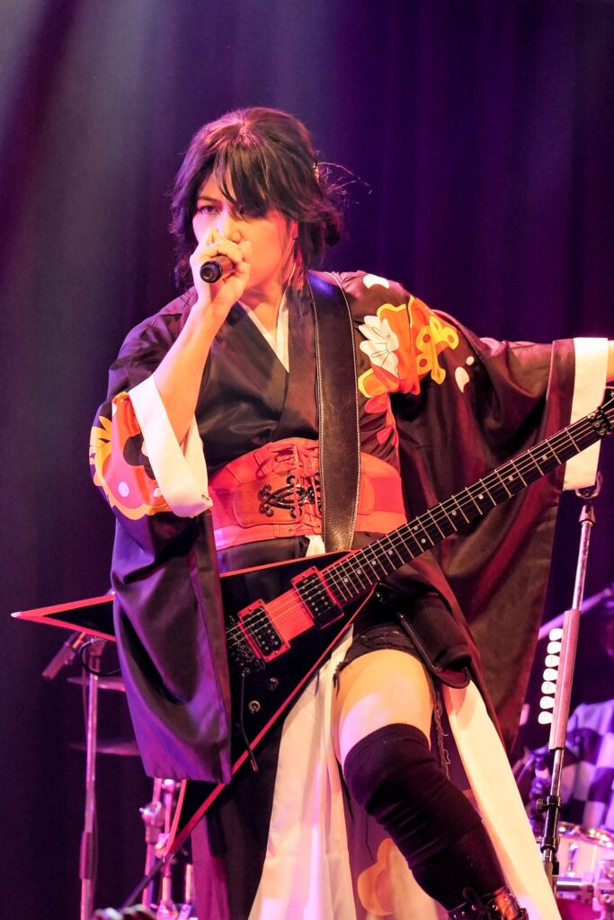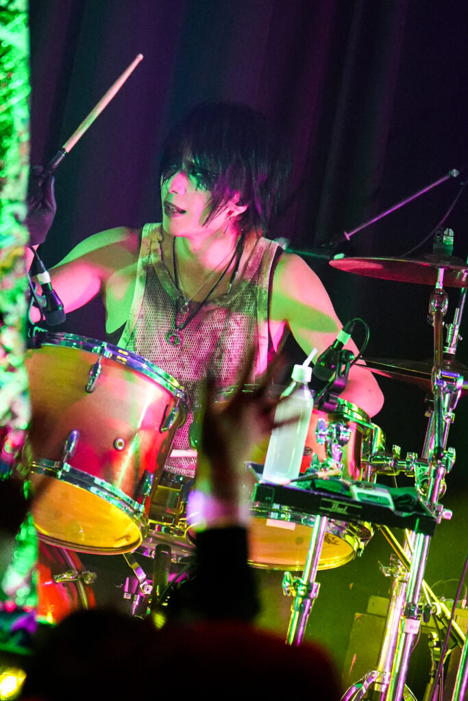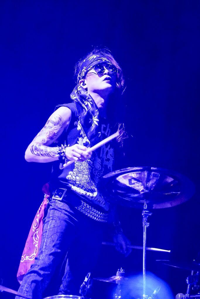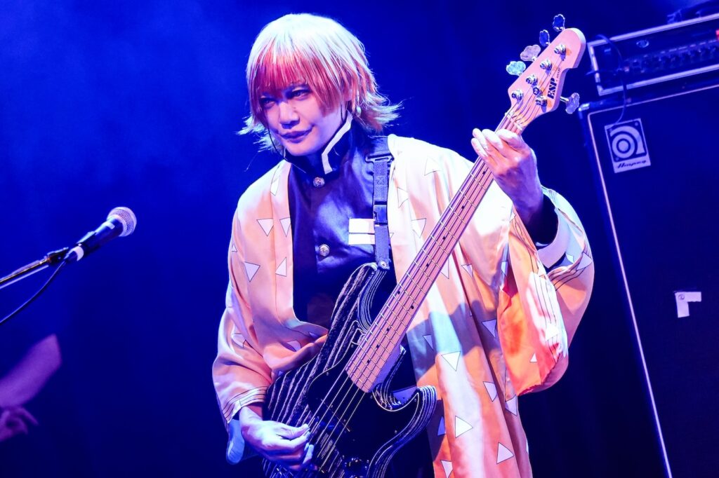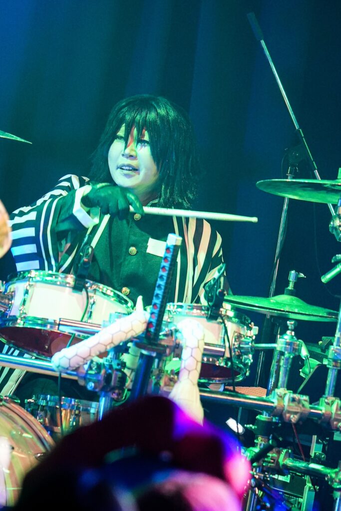 なお、SHIGE ROCKSは童磨、TENZIXXが鬼殺隊・村田、JIRO 6はジローつながりで竈門炭治郎の姿を呈しており、最新シングル曲「狂鳴-Resonance-」など計5曲を鬼気迫る音で聴かせてくれたのだった。そして、カラコンを入れた紅き瞳でMSTRがテクニカルなプレイを連発していた様は、もはや血気術のようにも感じられた気がする。流石!!