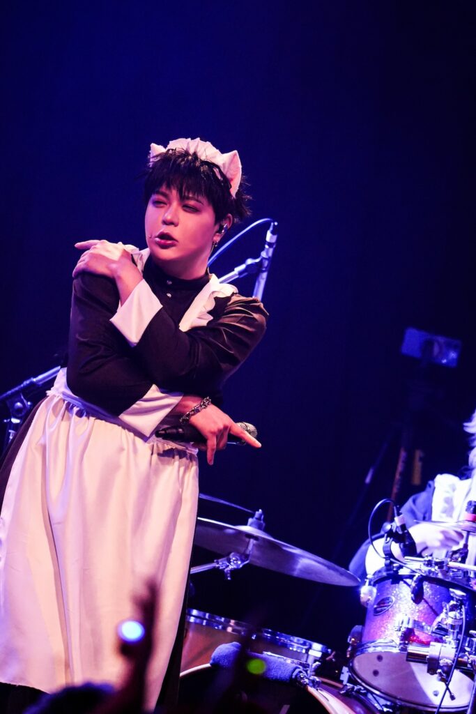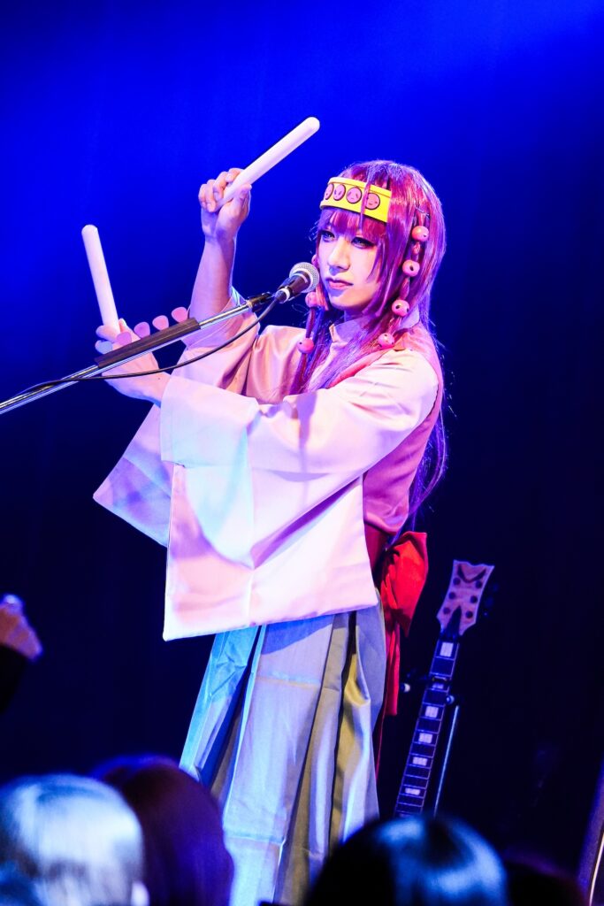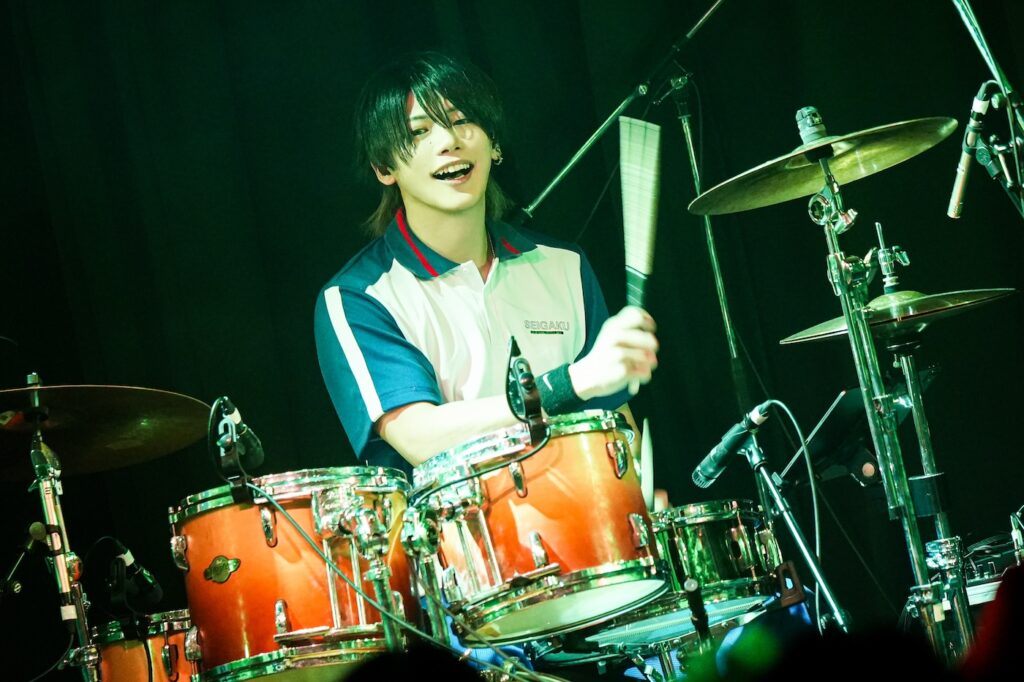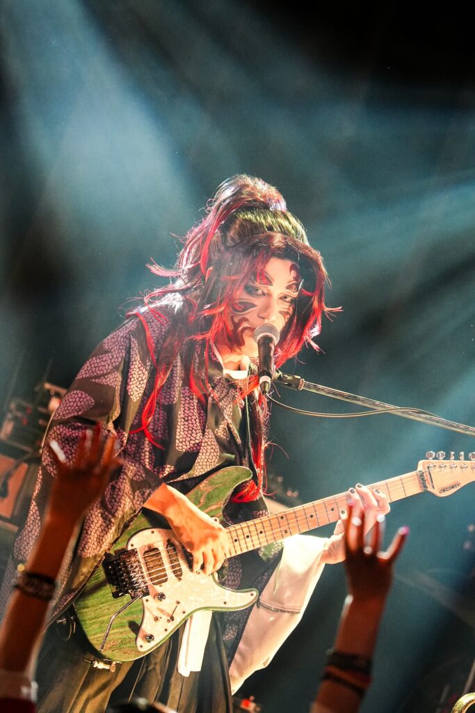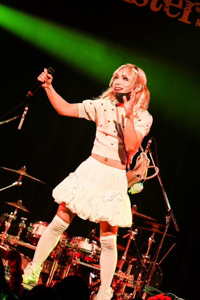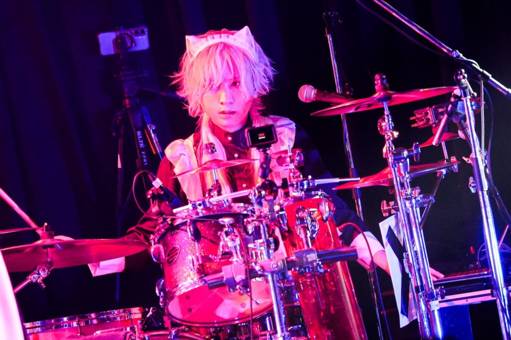 なお、SHIGE ROCKSは童磨、TENZIXXが鬼殺隊・村田、JIRO 6はジローつながりで竈門炭治郎の姿を呈しており、最新シングル曲「狂鳴-Resonance-」など計5曲を鬼気迫る音で聴かせてくれたのだった。そして、カラコンを入れた紅き瞳でMSTRがテクニカルなプレイを連発していた様は、もはや血気術のようにも感じられた気がする。流石!!