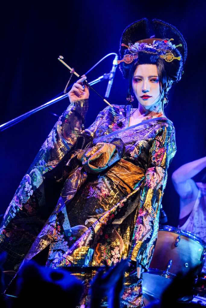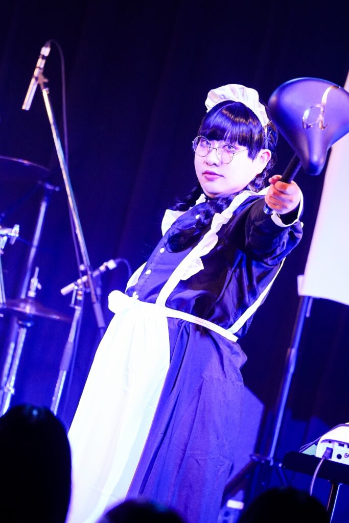 「全ての決定権は私にあり、私の言うことは絶対である」とは漫画『鬼滅の刃』第6巻での鬼舞辻無惨による名台詞であるが。なんと、今宵のMSTRはその場面を再現するかのような芸妓姿バージョンの鬼舞辻無惨コスで新宿ReNYの舞台へと降臨。さすがに無残様のような暴君とは違うとはいえ、クレモンのオーガナイザーであるMSTRはある意味で絶対的な存在といえるわけで、これはまたとない仮装だったと言えるのではなかろうか。