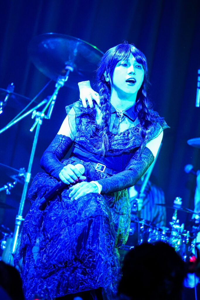 いったい我々は何を見せられているのか?と、あなたがもし感じたならば。今宵の勝負は彼らの勝ちだったことになるのかも。重音テト、『HUNTER×HUNTER』のアルカ=ゾルディック、『幽☆遊☆白書』の蔵馬、『こちら葛飾区亀有公園前派出所』の中川圭一、『BLACK LAGOON』のロベルタ。今宵それらに扮してくれた色々な十字架は、今年のクレモン出演者の中で最も新しいバンド(2020年結成)となるが、それでいて彼らの提示する音は“時代がかって”いるところが特徴的。90年代V系を忠実にオマージュした音楽性と、奇想天外にして謎深く中毒性が高い歌詞世界はバンドマン界隈や関係者筋からも注目されているほどだ。