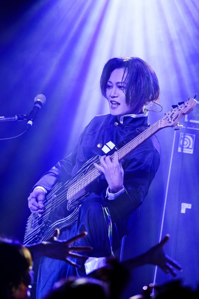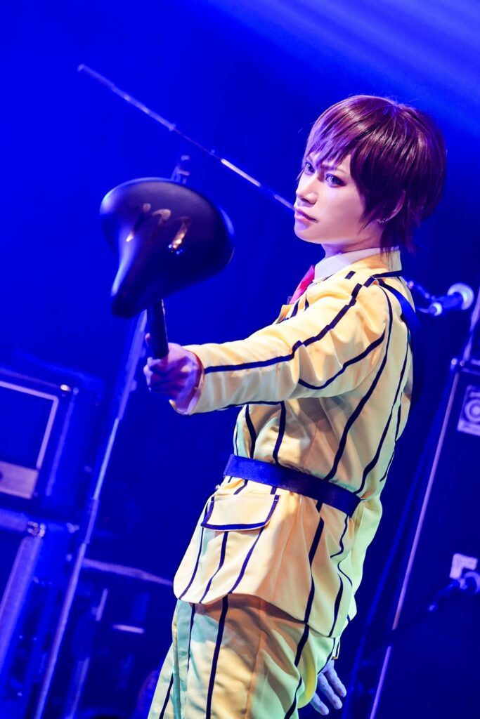 スリーピース構成で彼が聴かせてくれたのはテニプリ提供曲たちとソロ曲で、ベース&ヴォーカルのIKUOは手塚国光、ギターのRENO(ViViD/Damian Hamada’s Creatures)のは菊丸英二、ドラムの志雄(MAQIA)は越前リョーマになりきった青学テニス部ジャージを纏っており、場内からはそのハイクオリティな演奏と仮装に対して拍手喝采が贈られることになったのだった。唯一無二な真の神業ここにアリ。