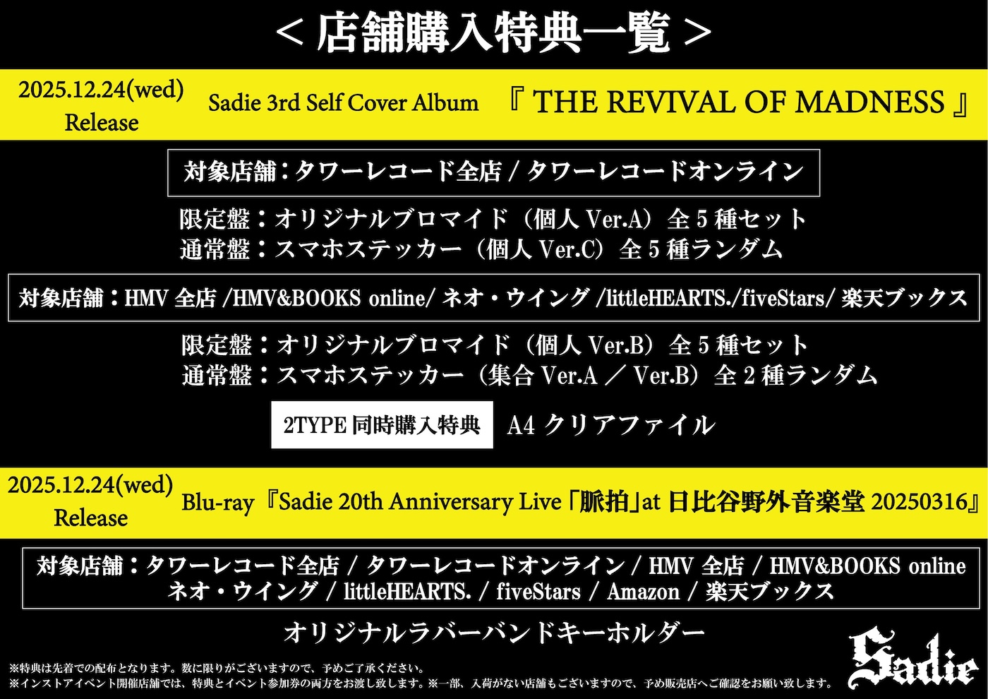 2025年12月24日、Sadieが贈るセルフカバーアルバム三部作の最終章『THE REVIVAL OF MADNESS』がついにリリース!