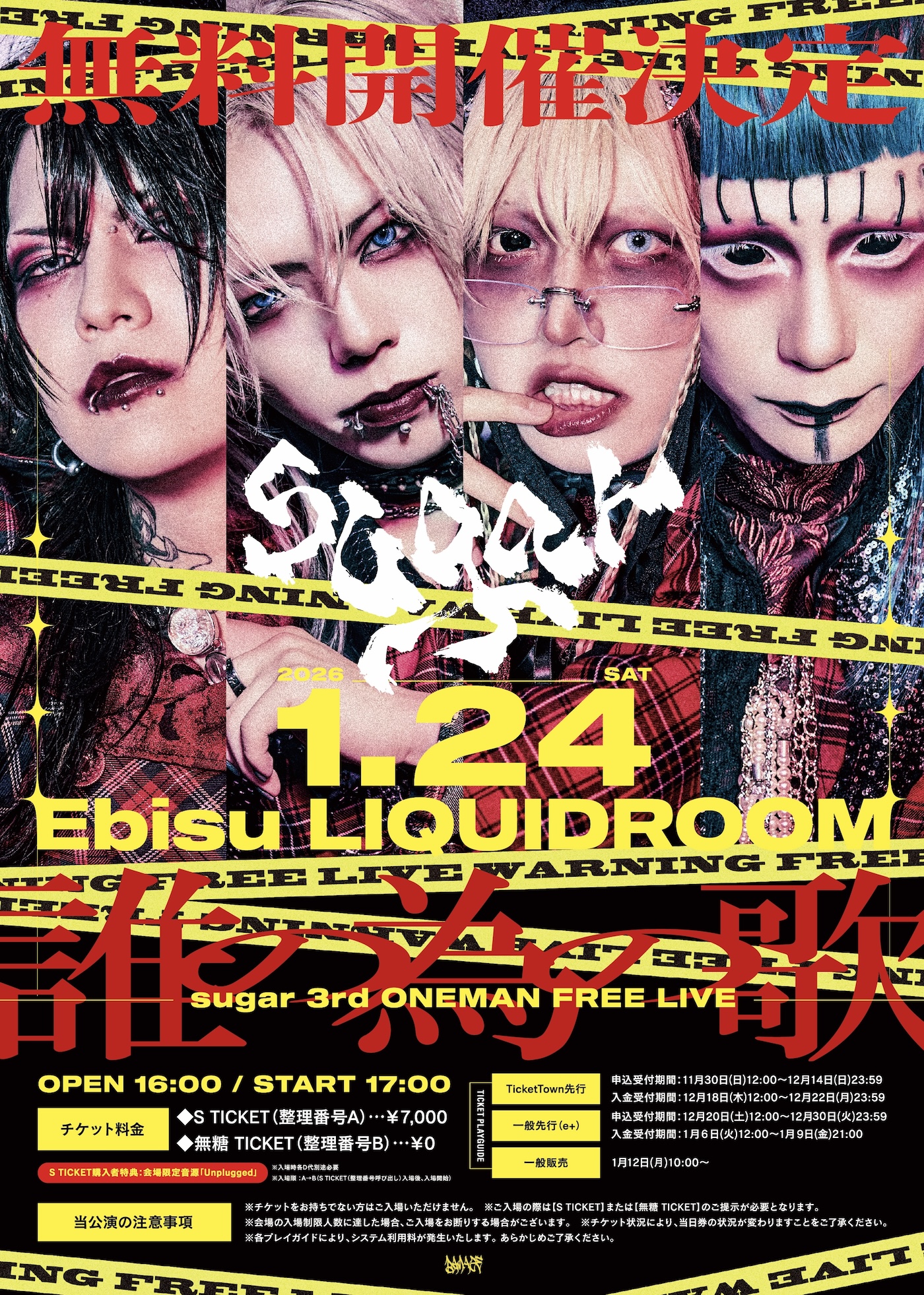 さらに、2026年1月24日(土)に恵比寿LIQUIDROOMで開催される単独公演「sugar 3rd ONEMAN FREE LIVE『誰の為の歌』」の詳細も発表された。