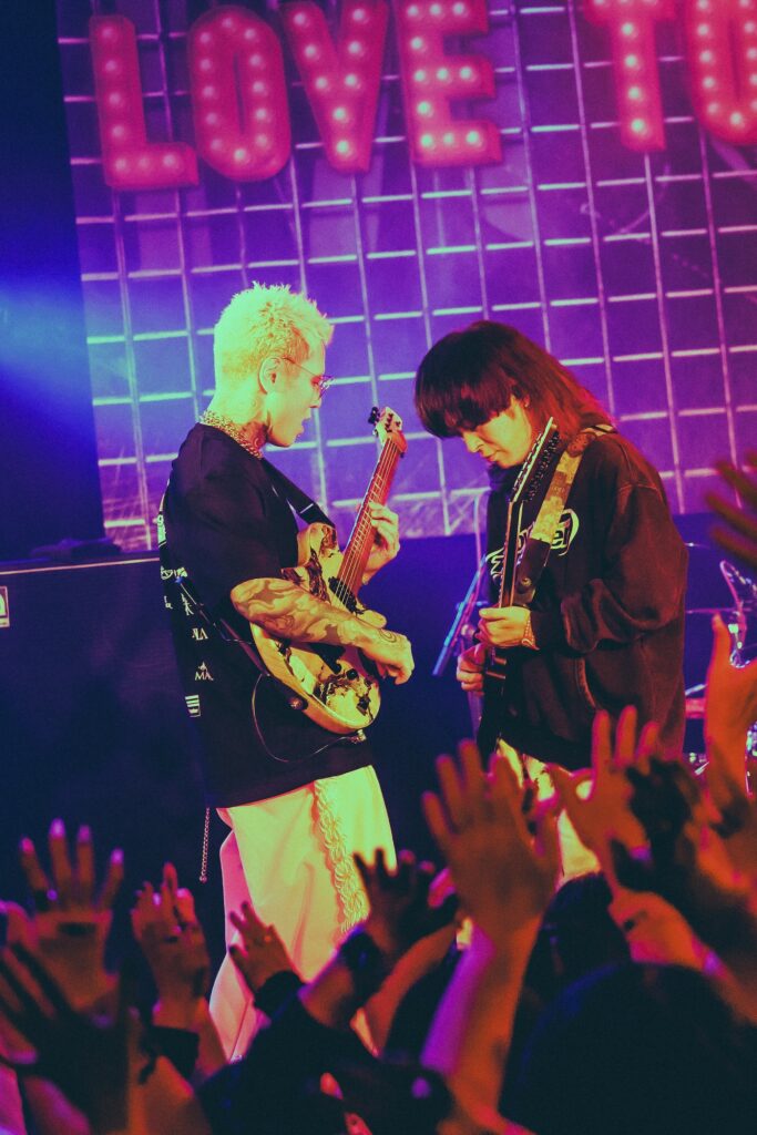 IZAはクールな佇まいかと思いきやマイクスタンドを投げ飛ばすほどに熱くなり、剣は上手ギタリストの王道を極め華やかに舞ってファンの視線を釘付けにした。