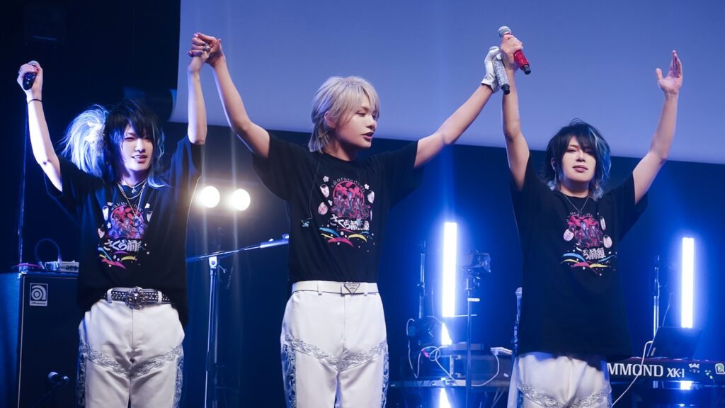 続いて始まったのが『演歌歌謡曲メドレー』3人が入れ替わりで懐かしの曲を歌いあげ続け様に入ったのが、和風歌謡ロックともいえる大作『大桜生』左右同時に開かれる腕と拳の力強さに観客は呼吸を忘れる程に心を掴まれてしまう。