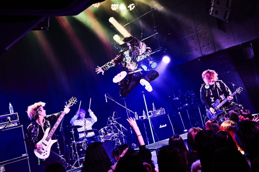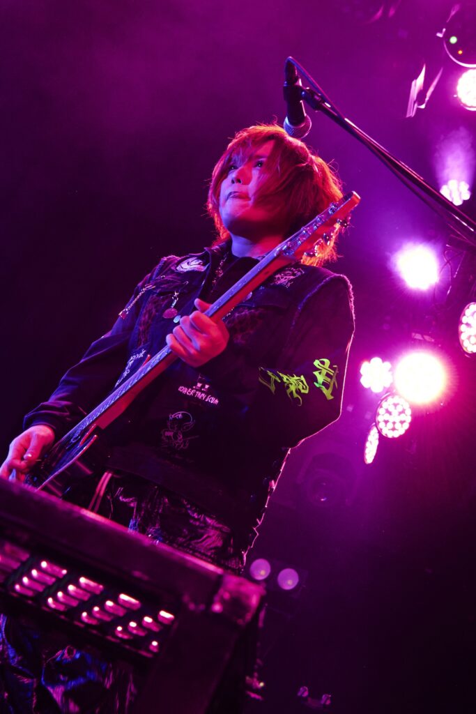 杙凪のタッピングからリズムインとともに公大と智也のボトムが疾走感を牽引する「アルカロイド」、野性的な「PANDEMIC」に続いて、間髪おかず演奏されたのは智也のドラミングがフックとなるハードな「VENOM」。