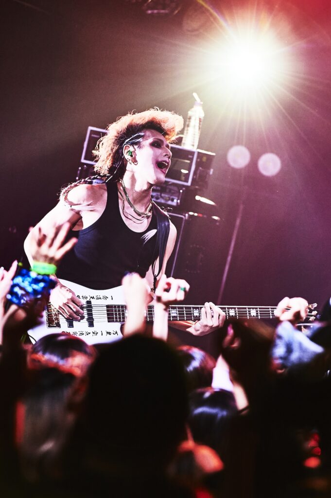 キラーチューン「嚙み痕」ではブレス混じりの繊細なアカペラとアンサンブルの隙間に生まれる切迫感でシリアスに惹きつけ、「甘い暴力の真骨頂見せてやるよ!」と咲が吼えた「乱痴気卍娘」では一転してカラフルな照明に映えるようにモッシュとヘッドバンギングの波を巻き起こした。「足りねえ足りねえ!あげろあげろ!てめえらでスイッチ入れろ!」と煽り倒した「暴動」でさらに加熱の一途をたどったことは言うまでもない。