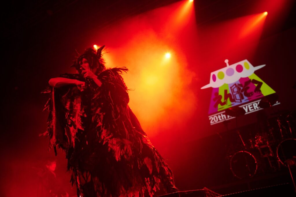 2005年、ミド(Ba)を中心に結成され、同年10月に活動を開始。2018年5月からは、ぶう(Vo),Joe(Gt),クラオカユウスケ(Gt),ミド,SIN(Dr)といった現在の5人体制となり、常に音楽へ斬新な発想をドッキングさせた唯一無二のバンドとしてヴィジュアル系シーンに君臨し続けてきた。実際、20周年を意識し始めたタイミングといえば、20周年へ向けて2年がかりで47都道府県を周るワンマン企画「いつか君の町にも~えんそくセイジンの儀~」を2023年に発表したときだろう。それ以降、劇的に増えた大型フェスへの出演や新宿・歌舞伎町シネシティ広場でのフリーライブを通してえんそくに触れられる機会を増やしながら、「えんそく、20周年だってよ!」と2年間お祝いムードを存分に楽しんできた。その“祭”のハイライトとなったのが、EX THEATER ROPPONGIという大舞台で開催した結成20周年記念単独公演である。