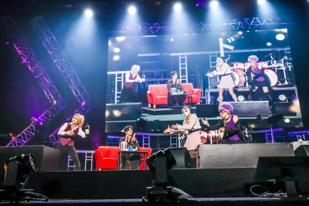 企画動画や恒例の演劇パートを挟み、後半では某ダンス&ボーカルグループ風に扮して「今夜はトゥナイト」をパフォーマンス。「まさし」「かまってちょうだい///」の曲中にはトロッコに乗って客席を巡り、続く「†ザ・V系っぽい曲†」ではヘドバンで圧巻の一体感が生まれ、「リフォビア」で本編は締めくくられた。