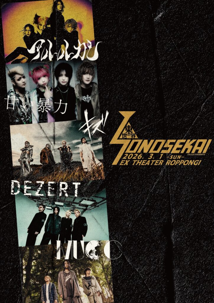 3. 【アルルカン】アルルカン主催<束の世界 -SONOSEKAI- 2026」>、MUCC/キズ/DEZERT/甘い暴力 出演決定。チケット先行受付スタート