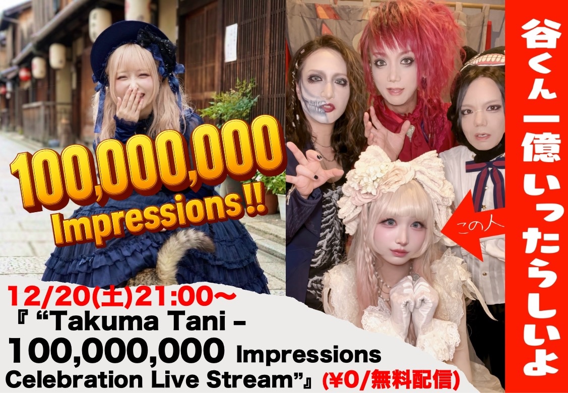 『 “Takuma Tani – 100,000,000 Impressions Celebration Live Stream”』