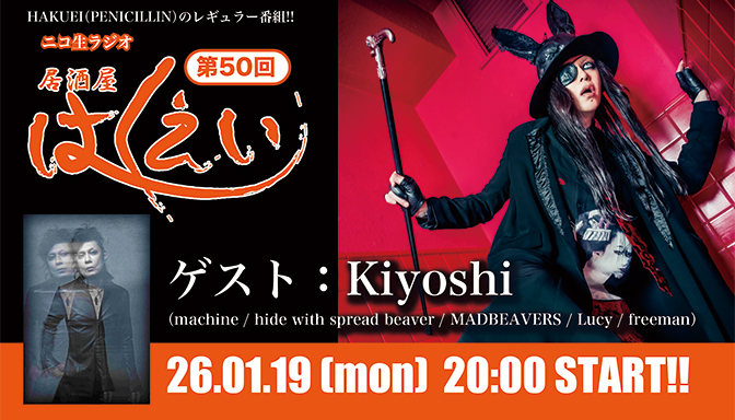 第50回は1月19日(月)20時よりオンエア、ゲストににKiyoshi(machine / hide with spread beaver)が登場!