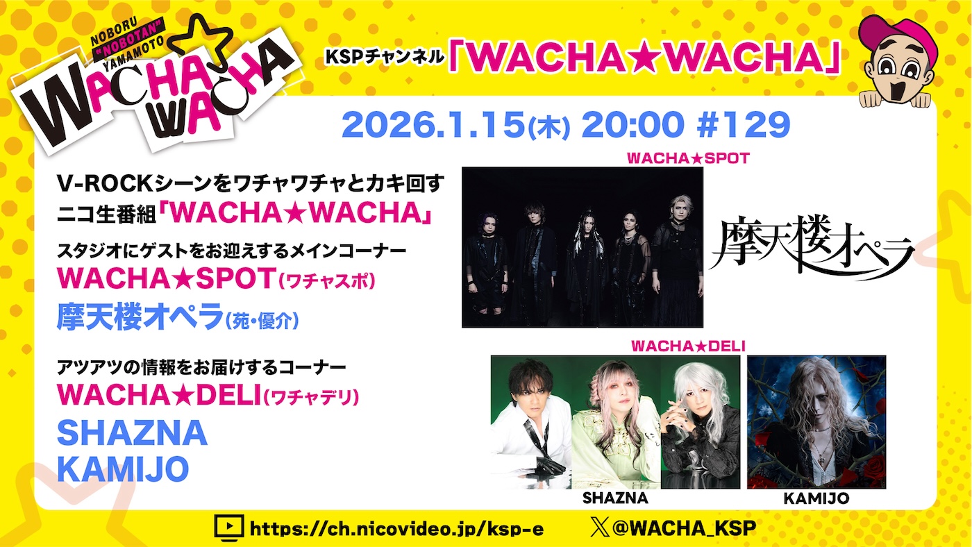 【WACHA★WACHA】<ニコ生番組>V-ROCKシーンをワチャワチャとかき回す生放送★2026年1月15日(木):摩天楼オペラ(苑・優介)がスタジオ生出演!SHAZNAとKAMIJOのコメント動画も!