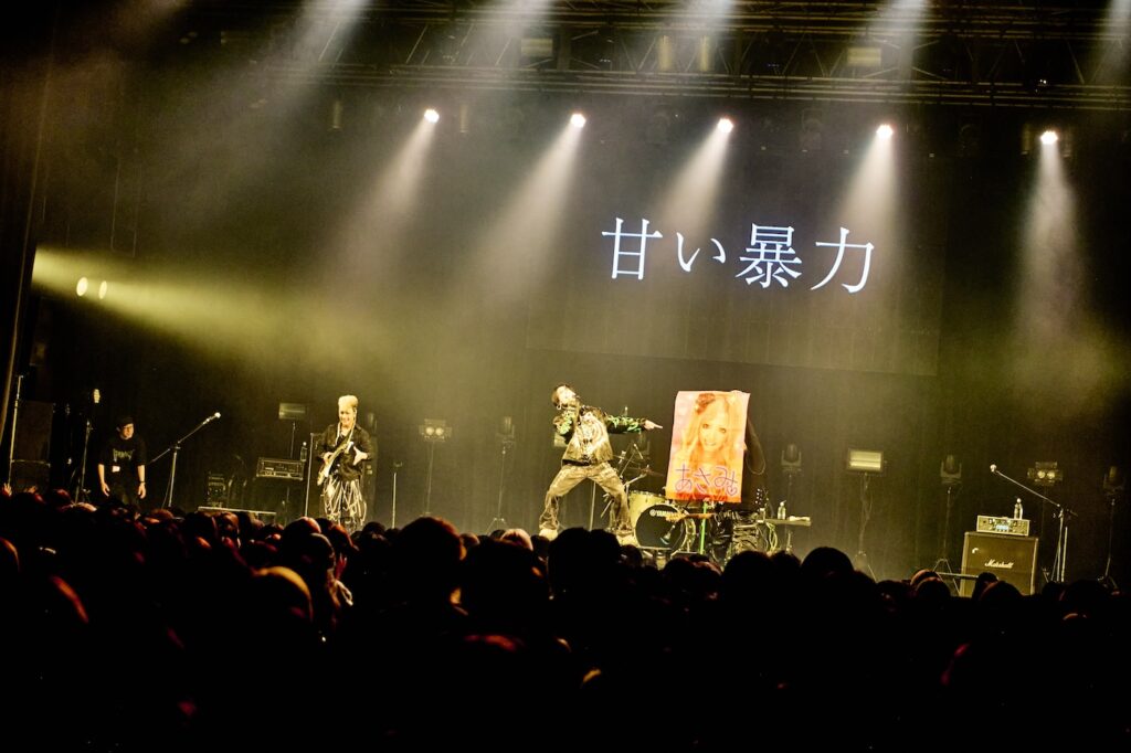 『性欲うさぎ』からスタートとなったが、冒頭にはお馴染みのうさぎマスクが登場するまでに文(Gt)と義(Ba)が“ボケ”をかまし、笑いでオーディエンスを掴むことも忘れていない。凶暴性の中にエンターテインメントを巧みに忍ばせる、これが甘い暴力に病みつきになってしまう要因であり、あまりにもズルい魅力だ。