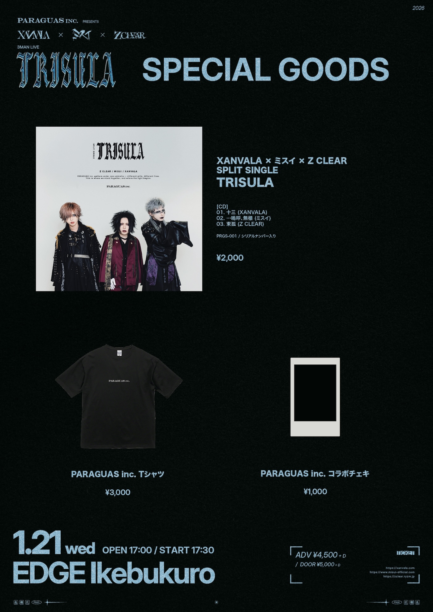 【XANVALA × ミスイ × Z CLEAR】<3MAN LIVE「TRISULA」>にて会場限定のグッズを販売