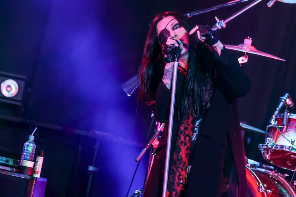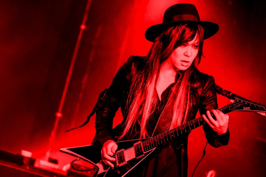 本人がこうして“55歳”と明言しているにも関わらず、到底そのようには見えないHAKUEIのグッドルッキングガイぶりは今宵も眩いことしきり。もちろん、輝いていたのはヴィジュアル面のみならずステージアクトやヴォーカリゼイションについてもまたしかりで、特にこのMCに至る前にライヴの1曲目として聴けた「阿修羅 青年期」では、〈力が正義だ〉という歌詞とともに良い意味で円熟味とはほど遠い、鋭く尖りまくったところを見せつけてくれたと言っていいだろう。