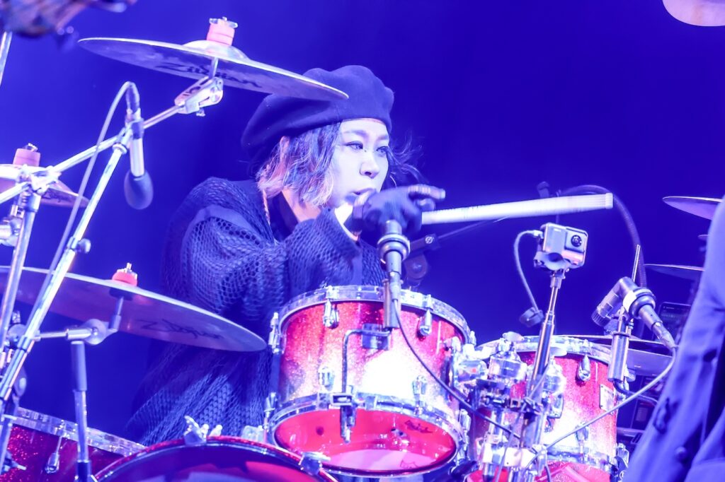 ちなみに、アンコールではHAKUEIの誕生日を祝うべくケーキ贈呈のセレモニーが用意されていたほか、ファンからもHAKUEIに対して「ハッピーバースデー」の歌が贈られたうえ、元メンバーであるGISHOからもプレゼント=“もしAIが元祖・PENICILIINのクリスマスカードを作ったら”というお題で作成されたという画像パネルが届けられることに。その後、まさに若かりし頃のPENICILIINや、HAKUEI自身の過去をふまえて詞を書いたという「阿修羅 思春期」が演奏されたくだりも、時を経た今だからこそのエモさをたたえながら表現されていたように思う。