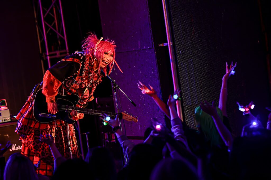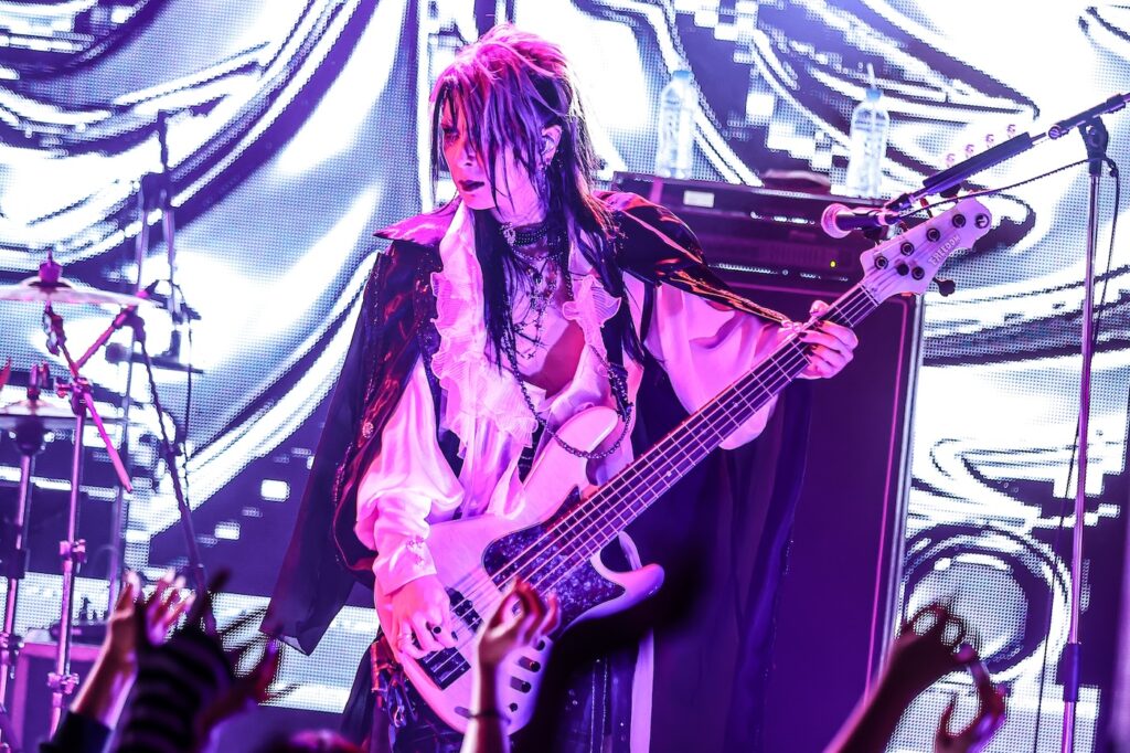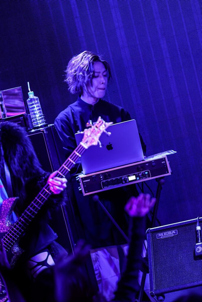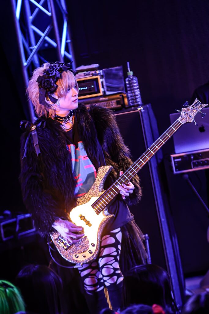 デジタル色の強いSEに導かれて楽器隊のリゼ(Gt)、八火(Ba)、レン(Dr)が登場すると、このときを待ち侘びていたフロアのボルテージがまた一段と上がるのが伝わる。