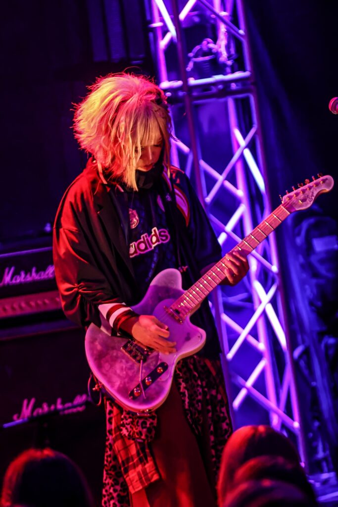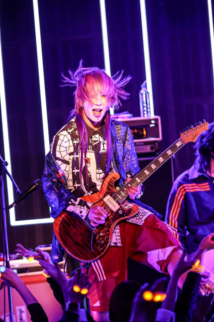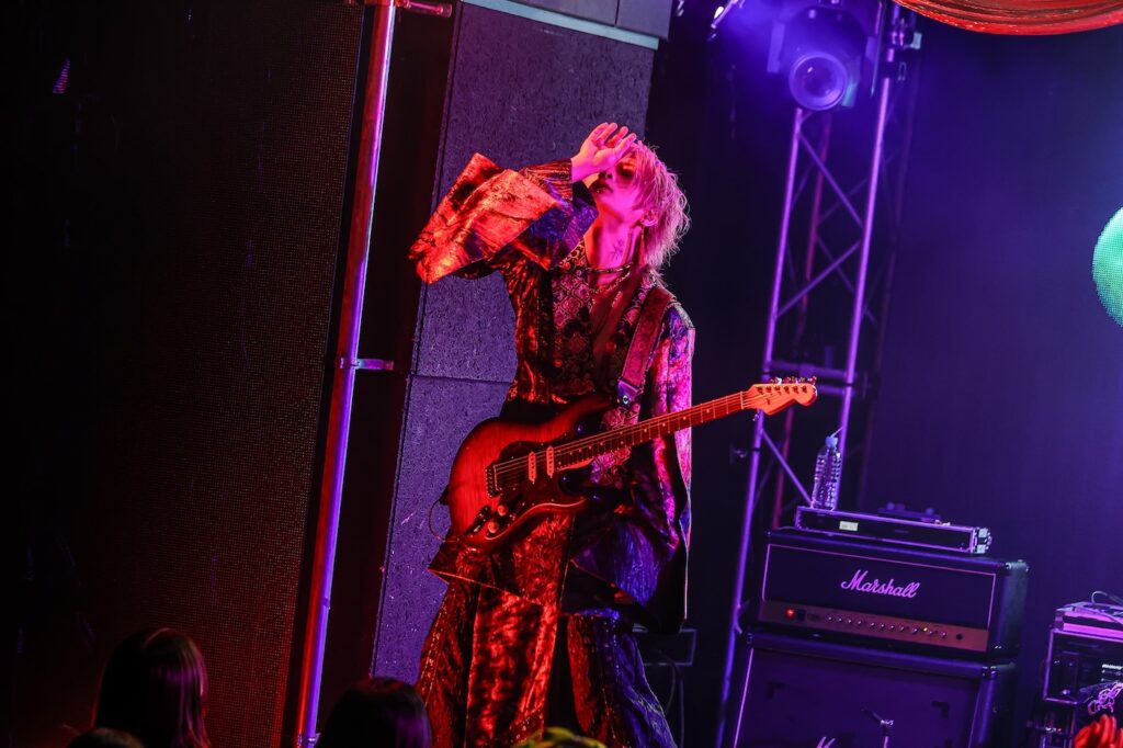DaizyStripperの上手ギタリストとしてダイナモ的な役割を担っている印象の強い直だが、ソロワークスも積極的で、この日も彼の後輩にあたるTHE_PiTY.のリゼと八火の熱いオファーに応える形での熱演となった。