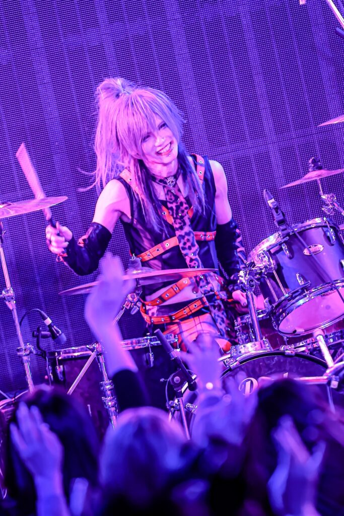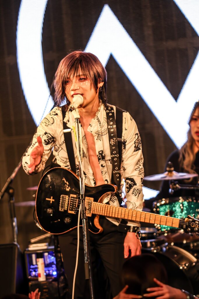 終盤、サポートベーシストという役割に収まらないメイとツインヴォーカルをとる「黒と白=悪魔と天使」でアゲていくと、最後はギターを置いてハンドマイク1本でパンキッシュな「NOT ENDed YET」を届けた。