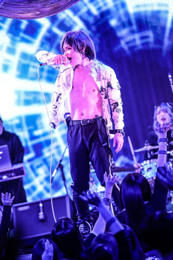 そしてフロントマン=ゆうは堂々とした振舞いで、THE_PiTY.が何たるかを見せつけた。振付を導入する「モザイクフィルム」でも顕著だったが、その物怖じのなさだけでなく、ボーカリストとして聴き馴染みのいい高音と安定した歌唱は目を張るものがある。
