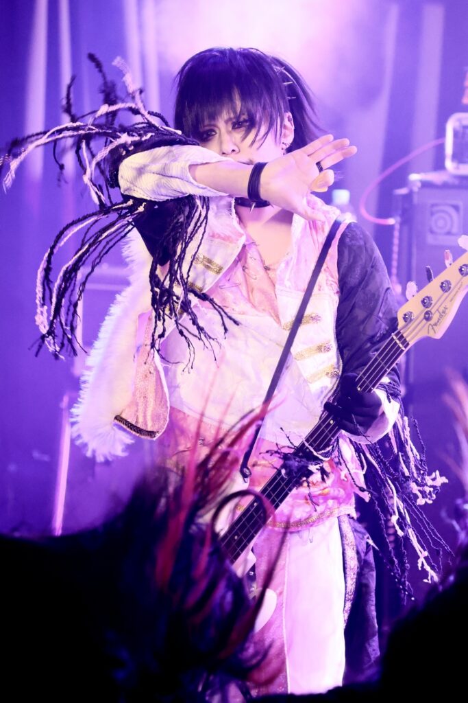 「やるぞ!声出せクソ野郎ども!」と挑発した「BLACK OUT」ではShuKa(Gt)のタッピングも冴え渡った。RiNaは以前、「BLACK OUT」はギャンブル用語をもとにした詩世界をメッセージに落とし込んでいると語っていたが、“選び抜く2択 掴み取る美学”と真っ直ぐに問うてくる様は、実にヤミテラらしい。