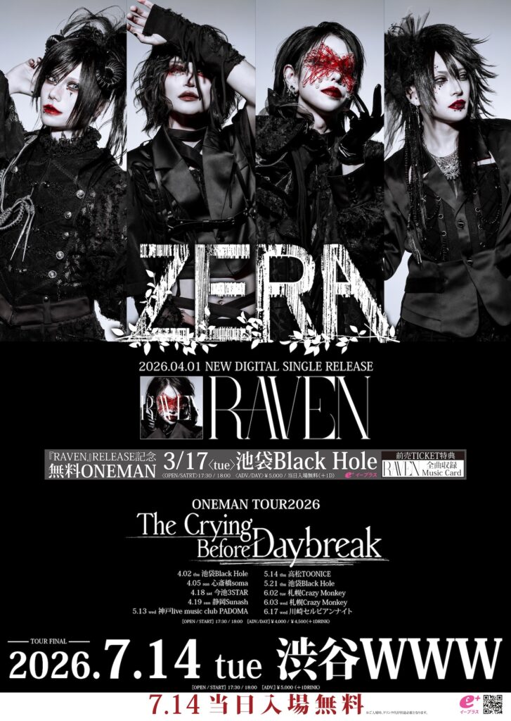 【ゼラ】結成6周年新作「RAVEN」4月1日リリース決定、リリース記念無料ワンマン&全国9都市ワンマンツアー開催