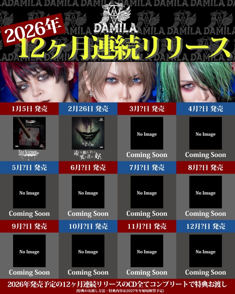 ・2026年発売予定の12ヶ月連続リリースのCD全てコンプリートで特典お渡し(特典のお渡し方法・特典内容は2027年年始頃解禁予定)