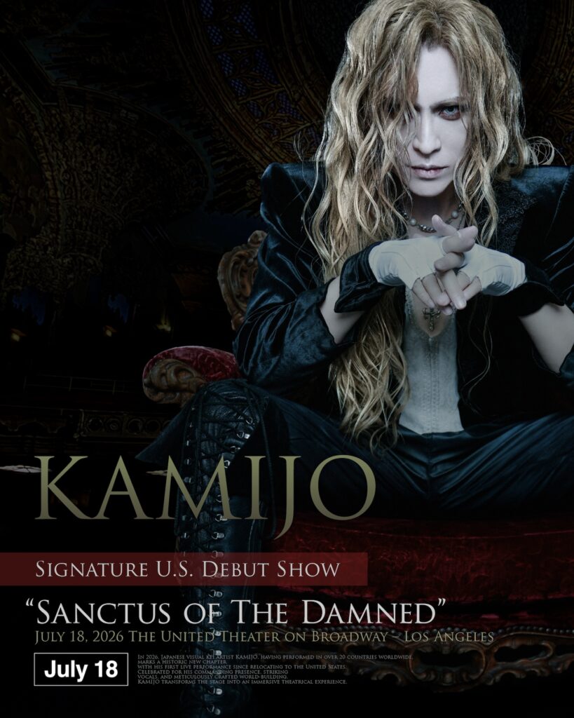 アーティストKAMIJOが、2026年7月18日(土)、米国・ロサンゼルスの UNITED THEATER にて “KAMIJO Signature U.S. Debut Show — SANCTUS OF THE DAMNED”を行うことを発表。