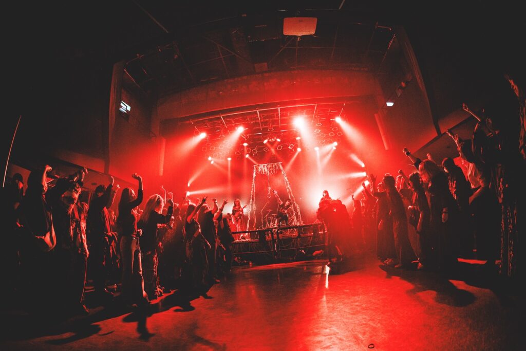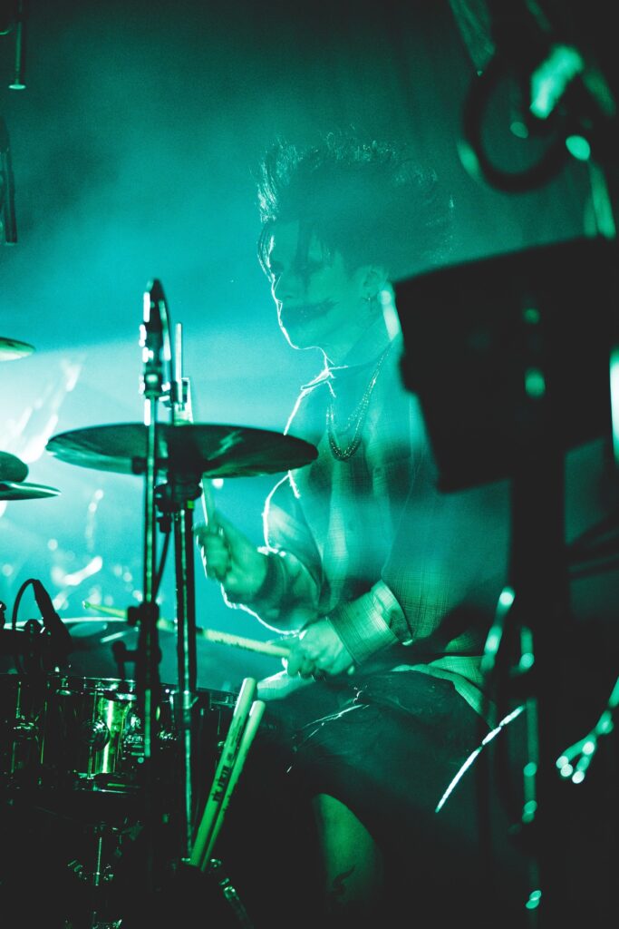 ブラックメタルを思わせる『THE LIBRA』、さらに初お披露目となった『Trite and nauseating』では、瞬時に轟音へと身を委ねていく観客のエキセントリックな様子を前に、不敵な笑みを浮かべるクラウンメイクのYoshiatsu。綴もしきりに「生きてんのか!?」と問いかけ、場内には互いの鼓動で満たし合うようなエモーショナルな光景が広がっていた。