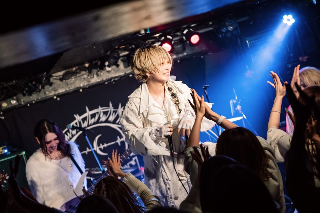 そのベビーフェイスと甘美な歌声が特徴の真宵だが、この日は、魅力はそのままに挑発的に会場を煽り倒す。それは闇雲な攻撃性とはまったく無縁のもので、とにかくこの空間をあますことなく楽しませたいし、楽しみたいという気持ちが全面に溢れ出たものだ。