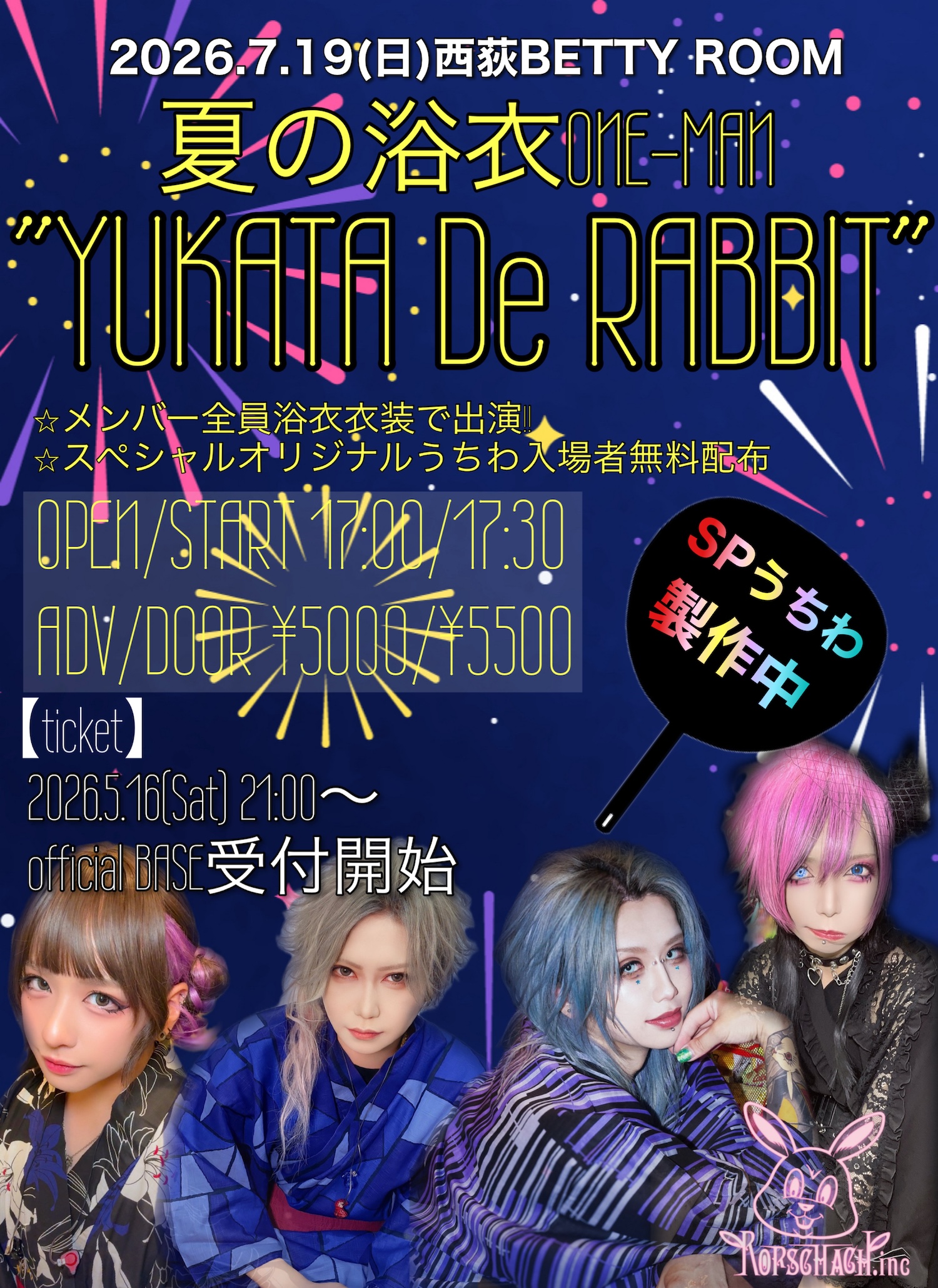 【Rorschach.inc】浴衣着用コンセプトワンマン「YUKATA De RABBIT」を7月19日に西荻BETTY ROOMで開催