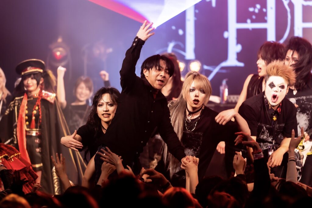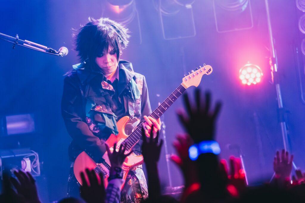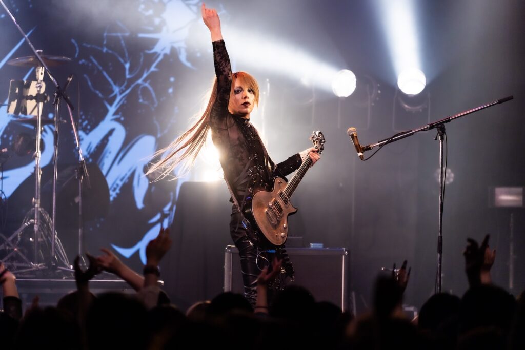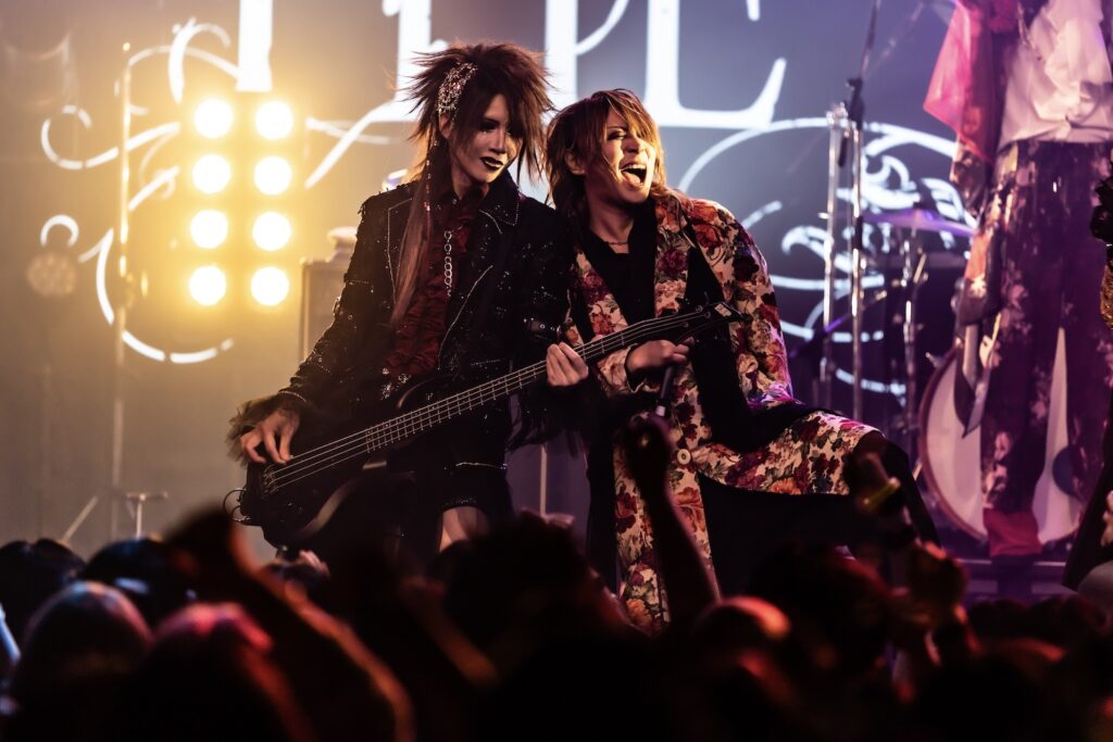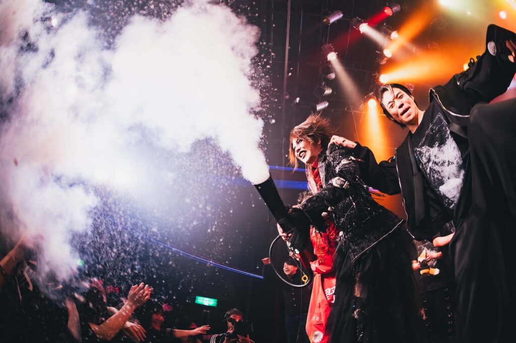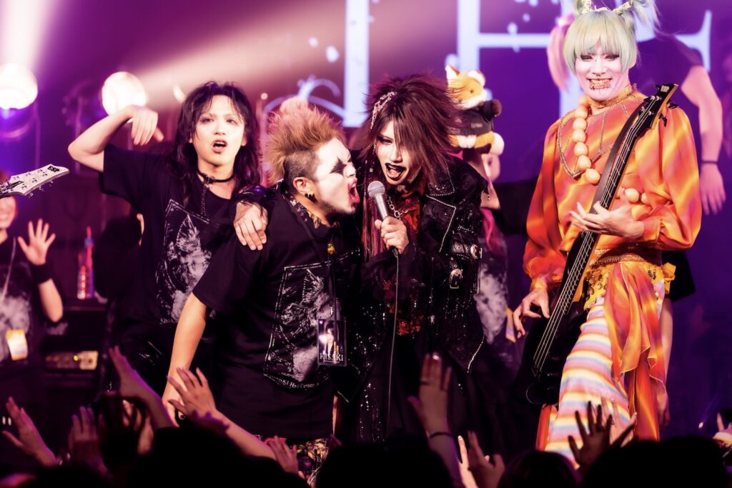 ここからライブは、一気に激しさを増していく。荒ぶるseekの煽り声を合図に飛びだした『Murderer・Death・Kill』に乗せて、観客たちが一斉に騒ぎだした。YURAサマの叩き出す軽快なビートが熱狂へと導く軸になり、そのうえでDAISHIと楽器陣が感情を露に、ときに激しく頭を振りながら音を繰り出していた。曲が進むにつれて、楽曲の表情が豊かさを増していく。