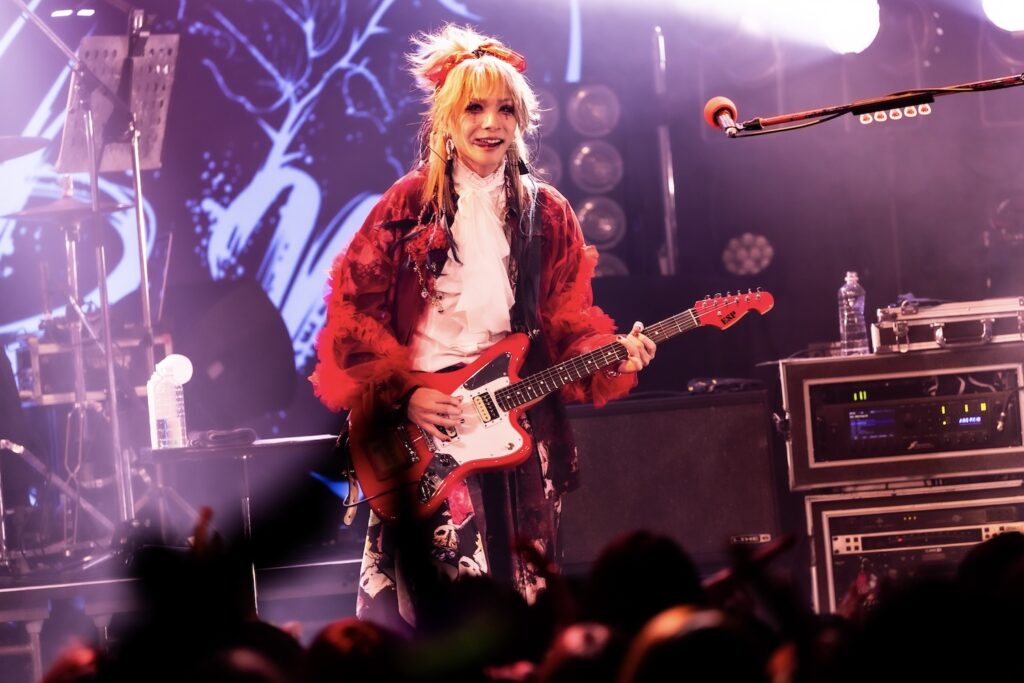ヴィジュアル系のイベントにガールズバンドは不利?そんな常識を覆す勢いで、彼女たちは迫ってきた。その気迫を感じた観客たちも、リスペクトを持って4人の姿を受け止め、思いをぶつけていた。続いて届けた最新曲の『Delete』でも、BPMの速い、しかも鋭利すぎるほどに尖った演奏とメロい歌をミックスした楽曲を突きつけ、彼女たちは身体も気持ちも前のめりに迫っていた。攻撃性と胸を濡らす歌を巧みにミックスした演奏と、楽曲に込めた思いをリアリティを持って伝えるからこそ、気持ちが奮い立つ。