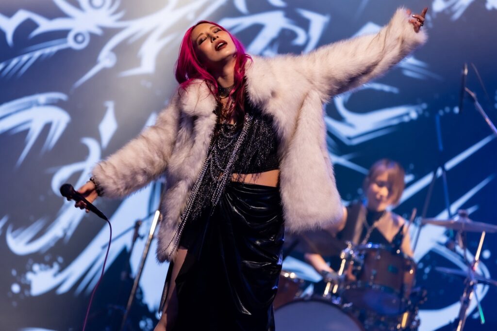 止まることなく『Retribution』へ。先の勢いを増幅するように、彼女たちは歌い、叫び、身体を大きく揺らしながら演奏を叩きつけてきた。歪む音を撒き散らして疾走する演奏の上で、観客たちの気持ちに火をつけようと歌い、叫び続けるLILLYの姿も印象的だ。